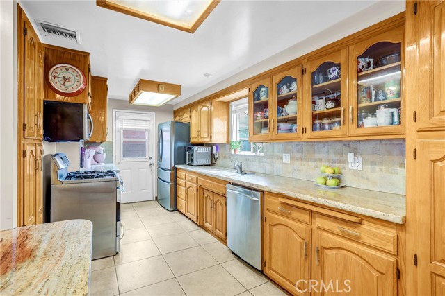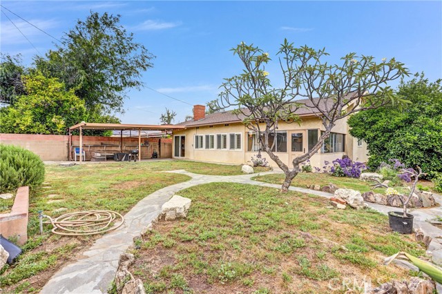 Opportunity meets potential in this well-maintained 4-bedroom, 2-bath home located in the City of Azusa. Designed for both comfort and functionality, the home features a desirable split-bedroom layout with the primary suite set apart from the three secondary bedrooms—ideal for privacy and flexible living. Key upgrades include newer dual-pane windows with plantation shutters, engineered wood flooring in all bedrooms, tile flooring in main living areas, and updated central HVAC for year-round comfort. Multiple living spaces, including a formal living room and separate family room, create a versatile environment for both daily living and entertaining. The galley-style kitchen is appointed with granite countertops, generous storage, and a breakfast bar for casual meals. Washer & Dryer hook ups are located in the ample enclosed patio which is also great for additional storage space. The private backyard offers a covered patio and mature fruit trees, creating a welcoming space for gatherings and relaxation. High block walls enhance privacy, while the location provides convenient access to shopping, dining, and nearby schools within walking distance.