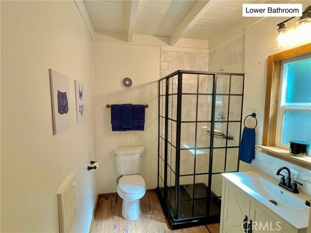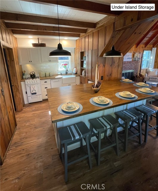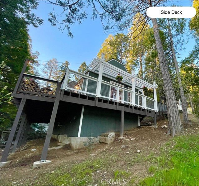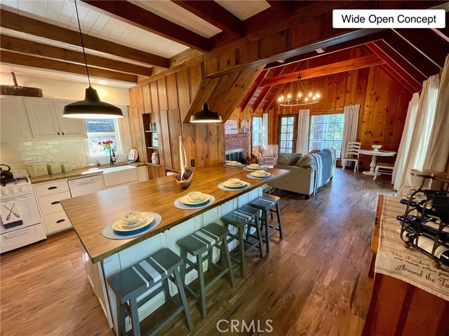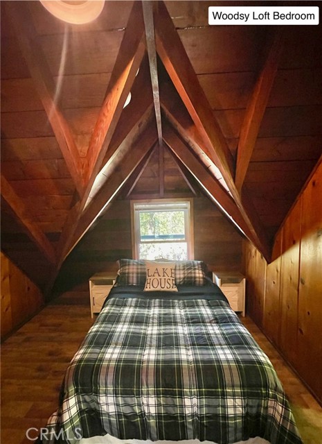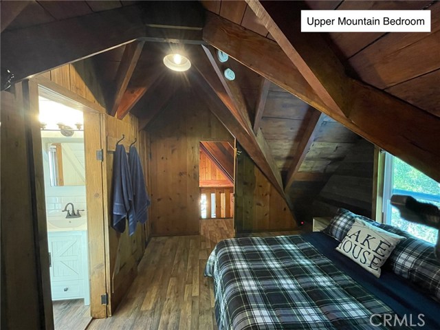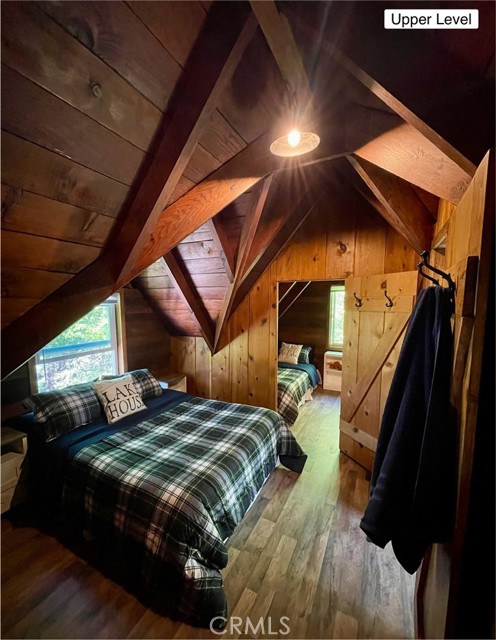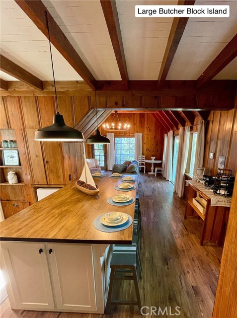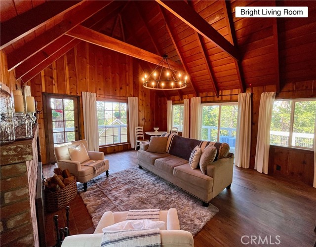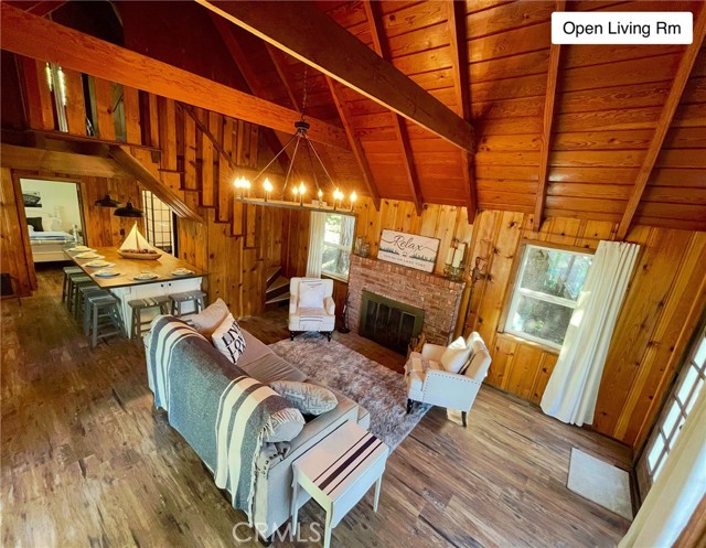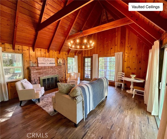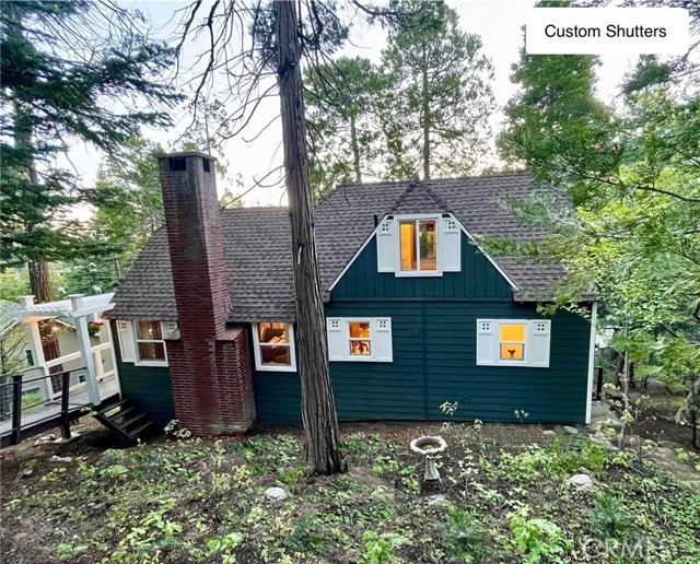 Vintage Feel, Modern Living. This hideaway is tucked just below Lake Arrowhead’s quiet Hillside Road. Among beautiful dogwood trees & towering pines, this newly renovated 1938 cabin blends the charm of a 1930s retreat with the comforts of a modern home. Easy access with bedroom on the main, ramp to the front door and street level parking pad. Just a short walk to Burnt Mill Beach and the newly updated Village, with its shops, restaurants, and summer concerts. Relax on the wrap-around deck and listen to the birds sing, church bells ring and the ducks chatting on the lake. Practically everything in this cabin has been updated—from plumbing to appliances to exterior siding to high efficiency heater—while still preserving its golden-age charm. The cabin has been thoughtfully remodeled to create a warm, open feel, featuring vaulted beamed ceilings, the original brick fireplace, and classic knotty pine T&G walls and ceilings. A large butcher block island separates the living room from a beautifully updated kitchen, along with a bedroom and bathroom with shower and laundry. Upstairs the warmth continues from the loft bedroom to a cozy side bedroom, and a bathroom with bathtub. New shuttered dual-pane windows and upgraded insulation keep the cabin warm and cozy on snowy winter days. Room for a workshop & storage under the house. Dock by Peninsula Park available for additional $$$. FULL LAKE RIGHTS.
