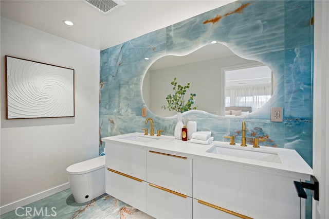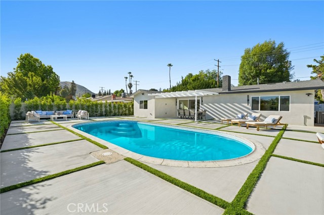 Welcome to this gorgeously remodeled pool home nestled in a highly desirable West Hills neighborhood. Thoughtfully upgraded throughout, this stunning residence offers the perfect blend of modern design, comfort, and functionality. Step inside to an open-concept floor plan filled with natural light, smooth walls and ceilings, wide-plank flooring, and elegant recessed lighting. The designer kitchen serves as the heart of the home, featuring custom cabinetry, quartz countertops, a built-in gas cooktop with pot filler, and sleek white glass smart appliances. The home offers a versatile 5-bedroom layout (4 bedrooms plus a dedicated office) and 4 full bathrooms, providing flexibility for modern living, working from home, and hosting guests. Multiple en-suite bedrooms—a rare and highly desirable feature—add comfort and privacy throughout the home. Each bathroom has been beautifully remodeled with floating vanities, frameless glass showers, designer tile work, and smart toilets. Additional upgrades include a new roof, dual-pane windows, updated electrical and plumbing systems, and an enhanced HVAC system featuring a new furnace and upgraded ducting. Step outside to your private backyard oasis, complete with a sparkling swimming pool, contemporary concrete and turf landscaping, and multiple lounging and entertaining areas—perfect for enjoying Southern California living year-round. This exceptional property combines style, quality, and thoughtful upgrades in one of West Hills’ most sought-after locations.