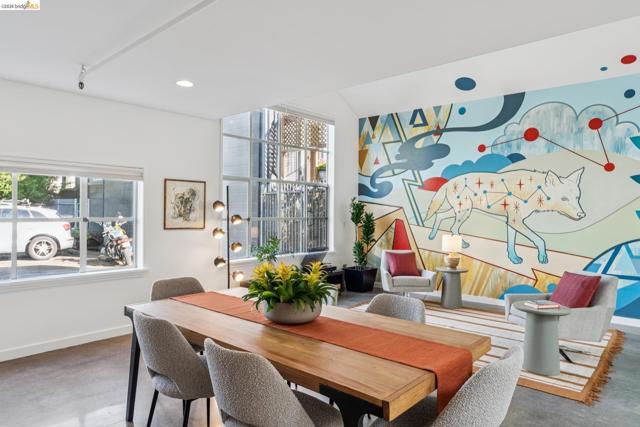 Experience the perfect blend of creativity, flexibility, and urban living at 926 Chester St #G — a true live/work loft in the heart of West Oakland. This distinctive residence offers the versatility today’s buyers are looking for, seamlessly combining residential comfort with space ideal for a studio, office, or entrepreneurial venture. Inspired by Oakland’s vibrant arts culture, the property features a striking custom mural—an eye-catching, conversation-starting piece that brings color, identity, and a sense of place to the space. Inside, the loft showcases an open-concept layout w/ soaring ceilings and abundant natural light, creating an airy and inviting environment. The main level provides a flexible living/work area, complemented by a full kitchen & bathrm, while the upper level offers a private retreat ideal for a bedrm, creative studio, or workspace & a full bath. Designed for both functionality and inspiration, live/work lofts like this are prized for their adaptability—perfect for artists, designers, remote professionals, or anyone seeking a dynamic space that evolves with their needs. Conveniently located near major transp, BART, fwy & the growing West Oakland corridor, this home places you minutes from Dowtn Oaklnd Jack London Sq, weekly farmers market & the broader Bay Area. 2 spaces in gated prking