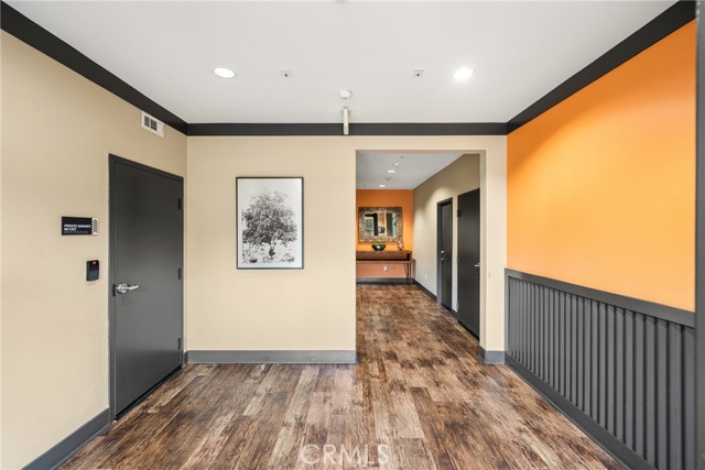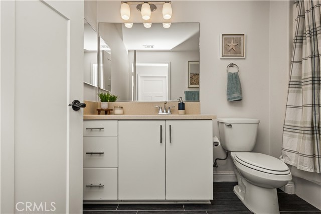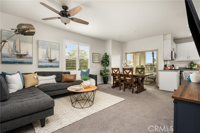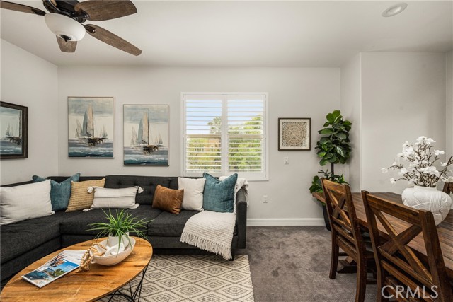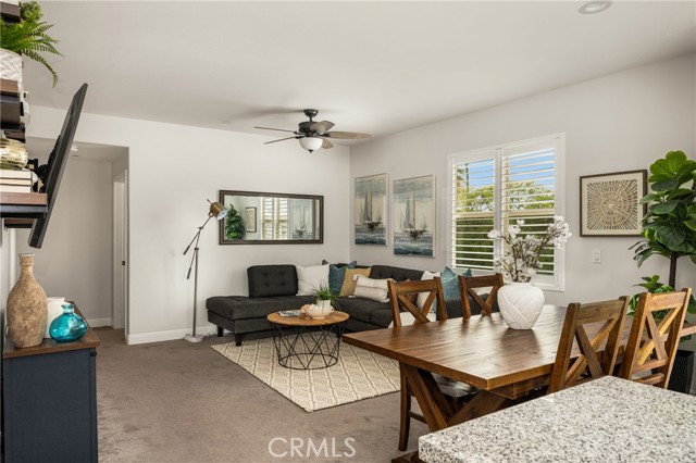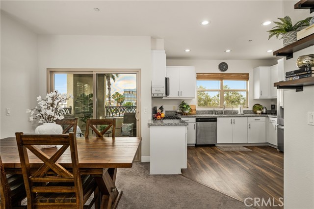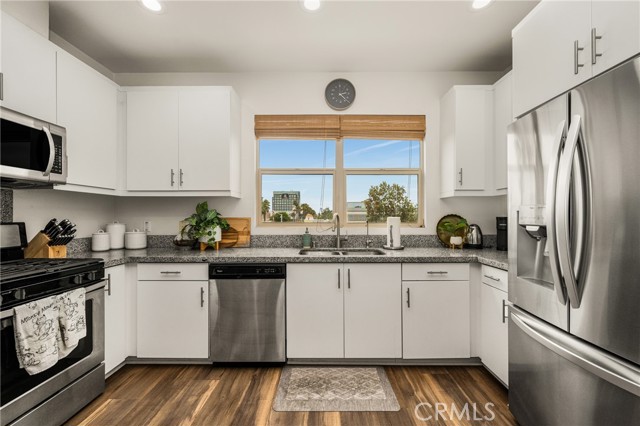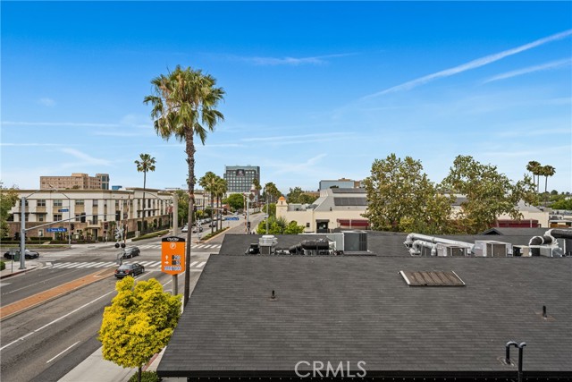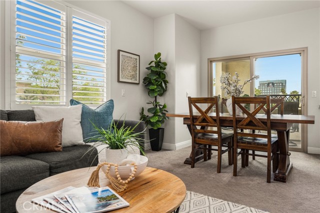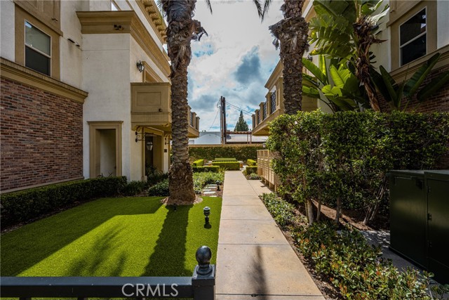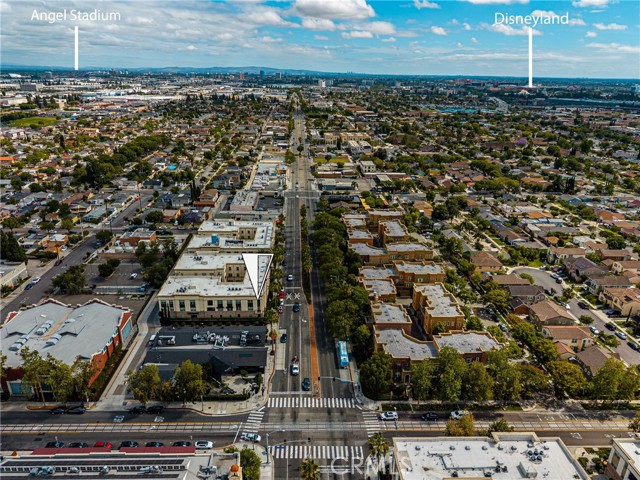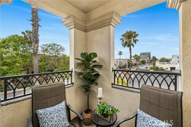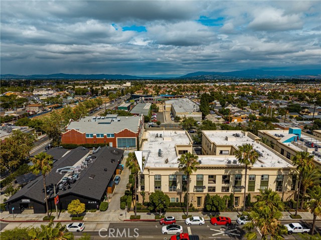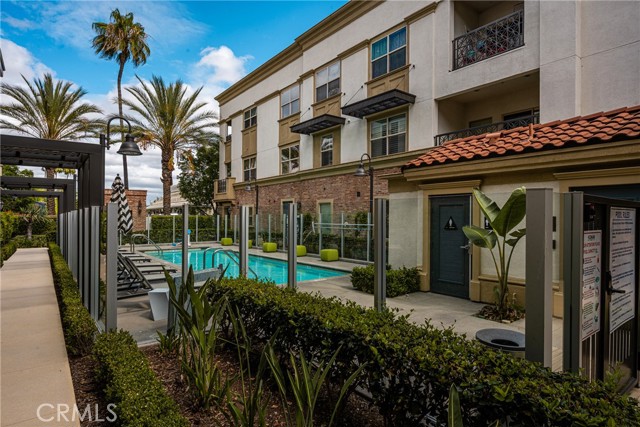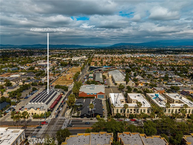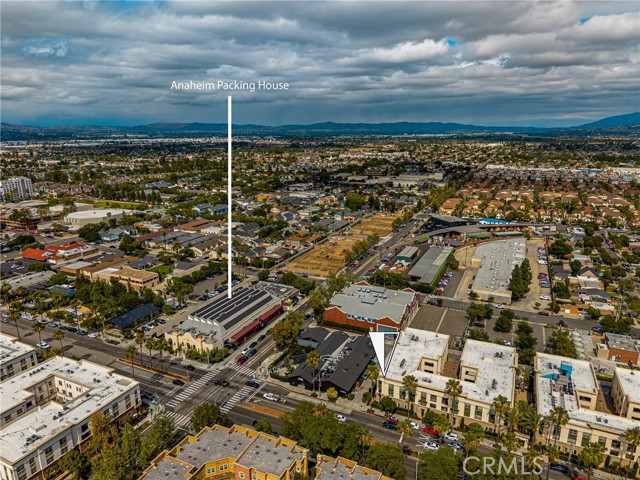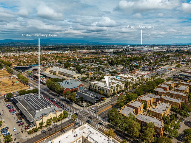 Experience the best of urban living in this stunning 2 bed/2 bath 1085 sq ft condo located in the Domain community. Ideally situated near the vibrant Anaheim Packing District, dining, shopping and entertainment, this home offers unbeatable walkability and access to everything downtown Anaheim has to offer. Built in 2015, this light-filled single-story layout offers modern finishes with an open concept. This is perfect for first time buyers or those looking to downsize. There is a blend of convenience, style and city energy with no steps and elevator access. Enter inside to a bright and airy floorplan perfect for relaxing while enjoying city light and neighborhood views. The kitchen is open and boasts white cabinetry, granite countertops with stainless appliances-including washer/dryer. The large primary bedroom includes an oversized walk-in closet, dual sinks and walk-in shower. The secondary bedroom is perfect for guests, a home office or additional living space and includes walk-in closet. Wood shutters throughout, new A/C condenser-complete with Nest thermostat. HOA offers 2 rooftop terraces, sparkling pool, outdoor fireplaces, Firepit, and BBQ areas. Designed with pet lovers in mind, featuring dog-friendly areas for convenient outings. Easy access to freeways, entertainment and major attractions including Disneyland and Angel Stadium.