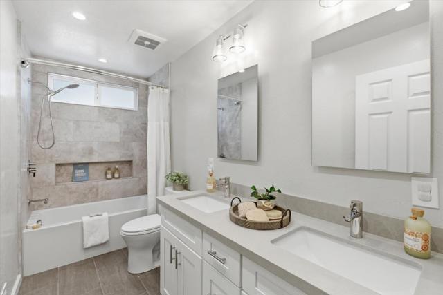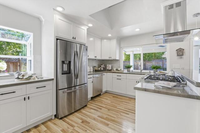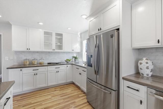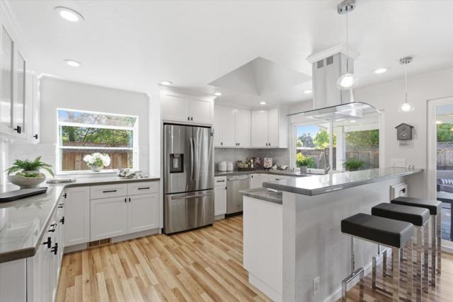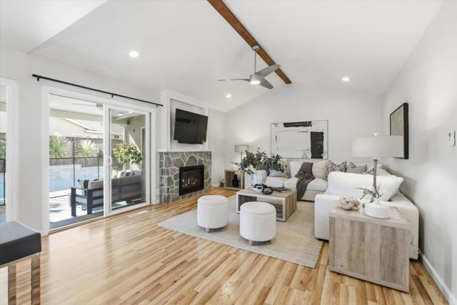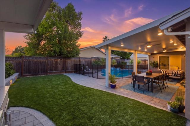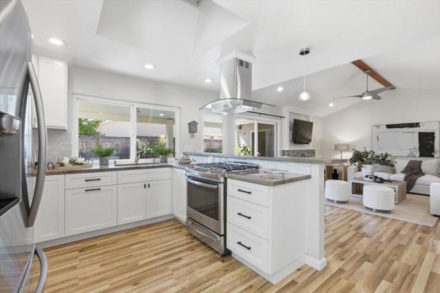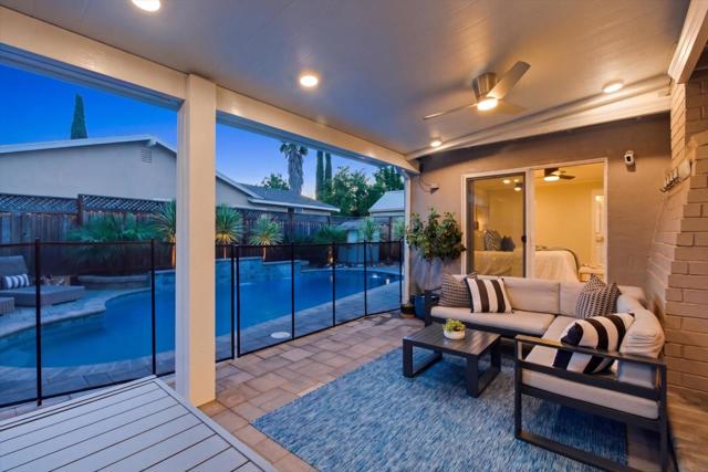 Immaculately updated! This turn-key residence offers 3 bedrooms & 2 full bathrooms with 1,760 square feet of impeccable living areas. Recent improvements include updated bathrooms featuring Hansgrohe fixtures, double sinks, procelain tile and quartz counter tops. The kitchen features granite countertops, stainless-steel appliances, a gas range, and white cabinetry. Outdoor living at its best! Just completed Oasis backyard featuring pebble tech pool, 3 waterfalls, multi-colored pool lighting, pool sweep, water leveling system and Pentair pool control. Insulated patio cover with side curtains and 2 fans extend the living area to the outdoors. Included in the sale is the outdoor furniture with expandable dining table and 8 chairs, a sectional sofa and side table with 4 chairs. Entertain your friends with the outdoor kitchen with built-in shaded gas BBQ and cold water sink. Relax in the Luminar outdoor 5 person Infrared sauna with red light therapy and sound system. Central heating & air conditioning for year-round comfort.