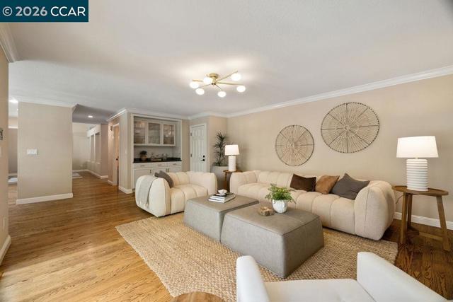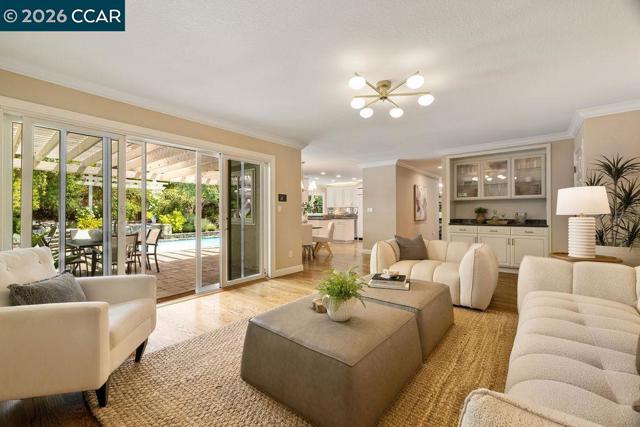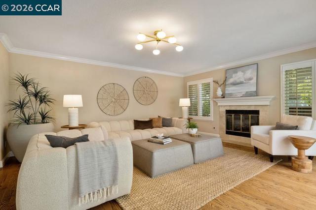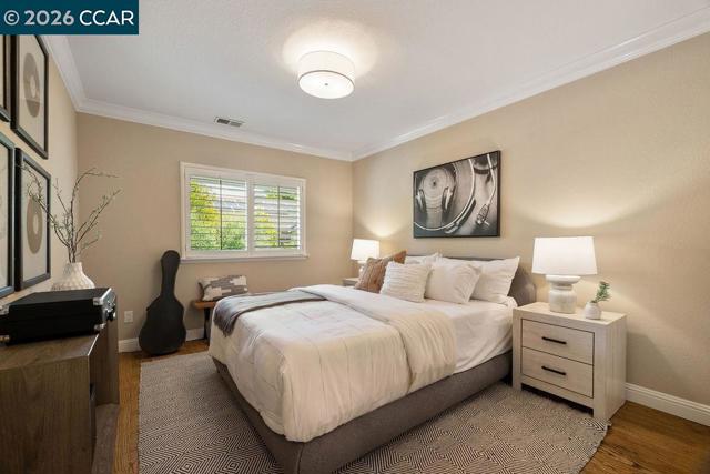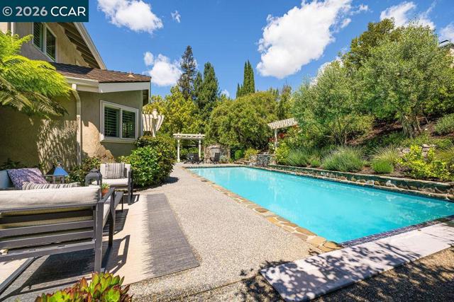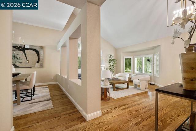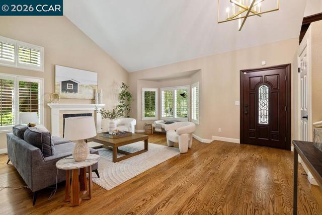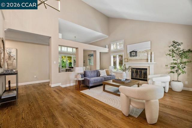 TWILIGHT TOUR 4/24, 5PM-7PM! OPEN 4/25, 1PM-5PM & 4/26, 1PM-4PM! This beautifully updated San Ramon home hits the perfect balance of character and modern living. Located in the heart of town, the interior is flooded with natural light and anchored by original hardwood floors that bring a warmth you just don't find in newer builds. The layout is easy and functional, with a kitchen designed to keep you connected to the living areas while entertaining. A major highlight is the primary suite’s private bonus room—it’s the perfect spot for a quiet home office, a nursery, or a gym. Outside, the backyard is your own private retreat, complete with a pool and fire pit for summer nights. You’re minutes from top-tier SRVUSD schools, local parks, and easy commuter routes. If you’re looking for a move-in-ready home with a great yard in a central location, this is it.