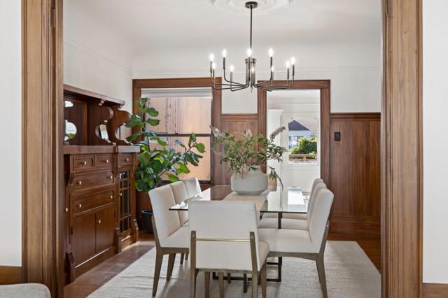 621 25th Avenue captures the essence of classic San Francisco living in the heart of Central Richmond. This impeccably maintained 2-bed 1-bath home blends timeless 1918 character with thoughtful modern updates, offering a warm and inviting retreat from the moment you arrive. A stunning foyer welcomes you in, highlighted by a beautifully preserved wood staircase that sets the tone for the homes rich architectural detail. Upstairs, gorgeous original woodwork, gleaming hardwood floors, and exquisite built-ins in both the living and dining rooms showcase the craftsmanship of a bygone era, meticulously cared for and in exceptional condition. Natural light pours through the home, enhancing its warmth and livability. The remodeled kitchen opens to a spacious deck, creating seamless indoor-outdoor living. Below, a magical garden awaits...lush, private, and whimsical, offering a rare city retreat. The remodeled bathroom is stylish and functional, while the oversized one-car garage provides abundant storage. A bonus room offers the perfect space for a home office, gym, or creative studio. Ideally located just moments from Golden Gate Park, the vibrant shops and dining along Clement Street, and Geary Boulevard, this home delivers the perfect balance of tranquility and urban convenience.