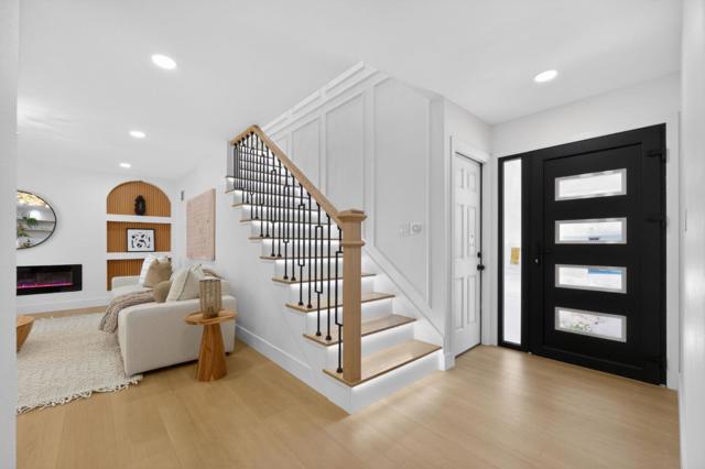 GREAT LOCATION & GREAT HOME!!! Fully Remodeled 2-story home in a Highly Desirable Campbell neighborhood. The functional floor plan includes a downstairs bedroom and full bath, ideal for guests, extended living, or office use. Upstairs offers three well-sized bedrooms and an additional full bathroom, providing a thoughtful separation between living and private spaces. Interior Upgrades include a modern fireplace in the living room, abundant natural light, and a European-style KITCHEN with New appliances and contemporary finishes. BATHROOMS have been updated with high-end tile and modern vanities. Additional improvements include updated FLOORING, a redesigned staircase, and cohesive modern finishes throughout. A sliding glass door connects to the backyard for seamless indoor-outdoor living. Extensive upgrades include a NEW ROOF, NEW HVAC system, designer lighting throughout, and all-new doors and windows, offering comfort, efficiency, and peace of mind. Freshly cleaned front yard with a large open lawn enhances curb appeal. The backyard offers mature trees, lawn space, and fruit trees for privacy and outdoor enjoyment. Close to Downtown Campbell, Pruneyard Shopping Center, and Los Gatos Creek Trail, with easy access to shopping,dining, parks,and San Tomas Expressway. A MUST SEE!