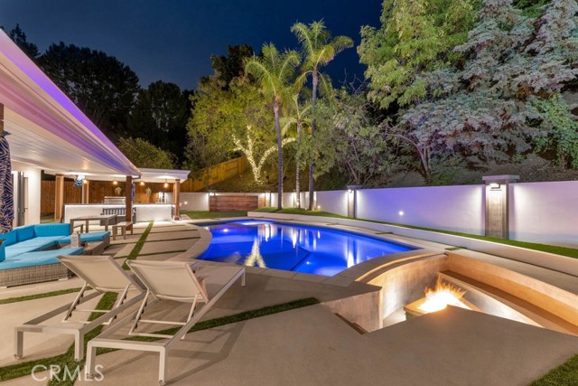 Perched atop prestigious Don Juan Place at the end of a quiet cul-de-sac just south of Wells Drive, sits this remarkable one-of-a-kind contemporary masterpiece, offering the ultimate in privacy and pure serenity. The interior is absolute architectural splendor, with an extraordinary open floor plan boasting European oak floors, gorgeous smooth stucco fireplaces, sophisticated lighting, and amazing skylights. This exquisite estate also features smart technology lighting, a gorgeous formal dining room, a sprawling master suite with his-and-her custom closets, and a gourmet chef kitchen with top-of-the-line Viking appliances, quartzite countertops, and pristine white oak cabinets. Slide open either of the dramatic La Cantina accordion doors to marry interior and exterior living spaces with truly graceful flow into the enchanting entertainer’s backyard complete with a brand new charming gazebo and impressive stainless steel BBQ area. The entertainer's yard is spectacularly immaculate with turf lawn, basketball court, lush putting green, vibrant landscaping, massive saltwater pool with Baja step, barstools and adjoining Jacuzzi, built-in state-of-the-art speaker and home security system, and a romantic subterranean gas-controlled fire pit. This A+ high-end luxurious contemporary entertainer’s dream home will not last. Also available furnished for $13,500/month