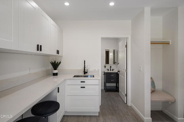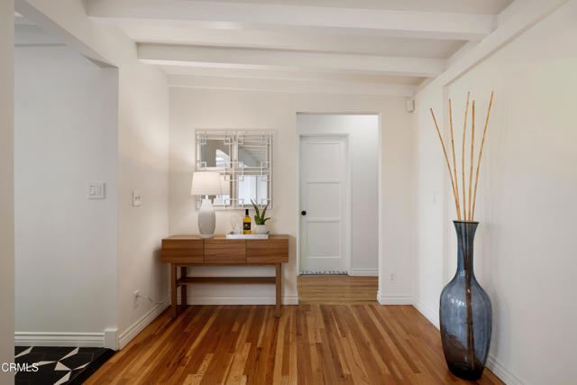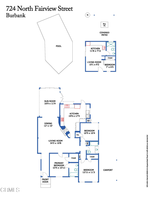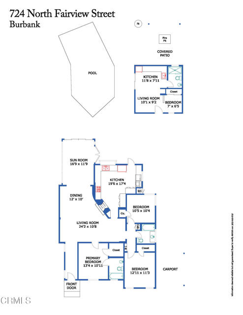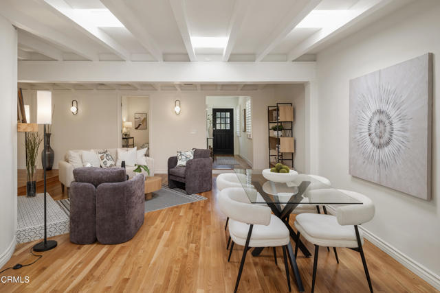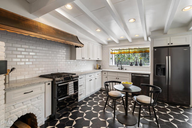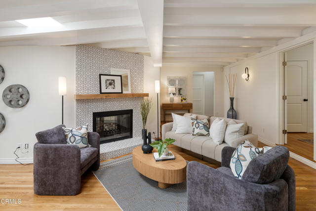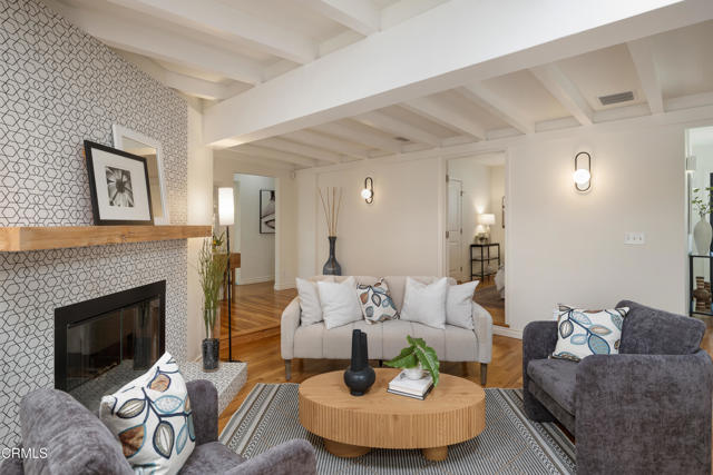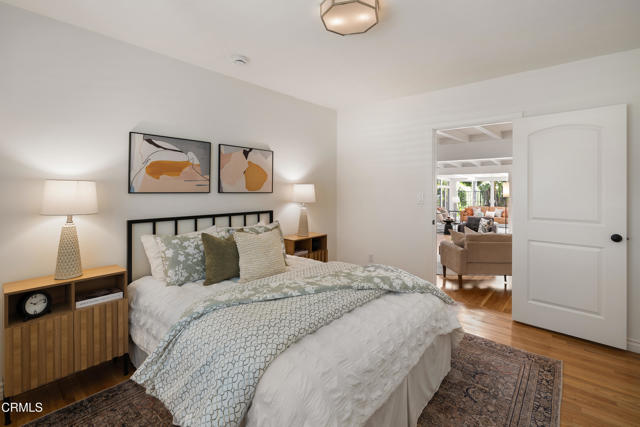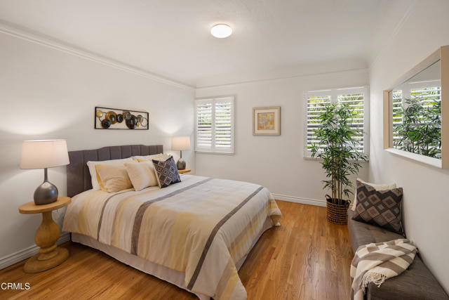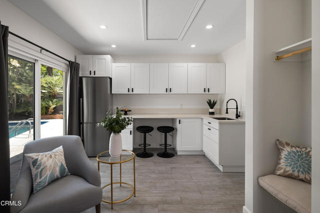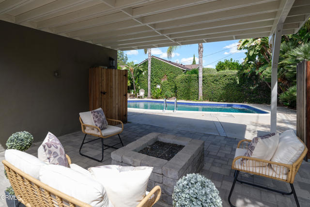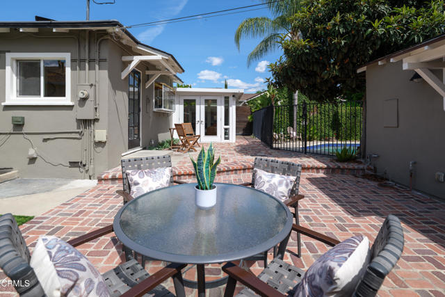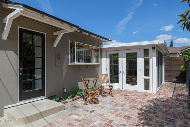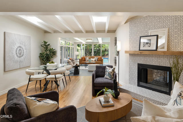 Set on a charming tree-lined street in the heart of Burbank, just moments from the studios, local parks, the Chandler bike path, and the shops and dining along Magnolia Boulevard, this beautifully updated 3-bedroom home offers style, comfort, and versatile living. Entering through a welcoming Dutch door, newly refinished hardwood floors lead into an expansive living space that seamlessly flows into a sun-filled, glass-enclosed family room with skylights. A custom-tiled fireplace with a stylish hearth anchors the main living area, creating a warm and inviting atmosphere. The updated kitchen is thoughtfully designed with tile flooring, stone countertops, a subway tile backsplash, and a stainless steel appliance suite. A standout feature is the custom copper hood above the five-burner range, complemented by abundant cabinetry and recessed lighting. A convenient laundry area with side-by-side front-loading washer and dryer is also located within the kitchen. The primary suite offers a comfortable retreat with wood-louvered shutters and a walk-in closet complete with built-in shelving and drawers. The ensuite bathroom features penny-tile flooring, a single-sink vanity, and a tub and shower combination with custom tile extending to the ceiling. Two additional bedrooms are well-sized and feature crown molding and charming coved ceilings. One includes a walk-in closet with built-ins, while the other offers ample closet space. A centrally located full bathroom serves these bedrooms and includes tile flooring, a stone countertop vanity, a tub and shower combination with subway tile surround, recessed lighting, and clerestory windows for natural light. Just outside the kitchen is a private backyard designed for both relaxation and entertaining. A brick patio and artificial turf area provide space for dining and play, while the gated pool area and a permitted covered patio offer a true outdoor retreat. Adding exceptional value is a fully permitted detached ADU, complete with wood-like flooring, a kitchenette with cabinetry, a refrigerator, and a bathroom featuring a walk-in shower with river rock flooring and tile to the ceiling. Sliding doors open to the pool deck, and a mini-split air-conditioning system ensures year-round comfort. This turnkey property combines classic charm with modern updates in one of Burbank's most desirable locations.