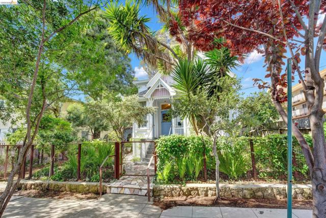 Don’t miss the opportunity to own a property just moments from the University of California, Berkeley. Step back to the early 1900s, where much of this home remains beautifully preserved in its original condition. Known as the Morning Glory House, this historic 1915 residence, designated a City of Berkeley landmark and formally recognized as the Joseph Clapp Cottage, situated just two short blocks from the University of California, Berkeley. The two-level home offers 3 bedrooms and 2.5 baths across 1,602 square feet of living space, along with a detached office featuring French doors that open to views of the grounds. Its iconic architecture is defined by a pair of tall, stick-framed windows in the front gable, complemented by ornate detailing throughout, including high ceilings, decorative plasterwork, intricate wood moldings, and expansive windows that fill the interiors with natural light. Designed with entertaining in mind, the home features two parlors: a formal front parlor for gatherings and a more intimate rear parlor suited for quiet visits, teas, or musical performances. The original kitchen includes a classic vintage stove and an additional cozy breakfast nook. Clawfoot tubs and high-tank toilets enhance the home’s old-world character. Historic features yield a Home Energy Score of 3. For added convenience, tandem parking and a laundry room with washer and dryer. Outside, the yard unfolds into a magical urban retreat, shaded by towering eucalyptus trees. Enjoy a book or your morning coffee from the primary balcony or the rear Savana-style porch. Ideally located in the heart of the city with a Walk Score of 98, the home offers convenient access to shopping, public transit, the Downtown Berkeley BART station, and the diverse dining scene of the renowned “Gourmet Ghetto.” Seize the opportunity to own a timeless piece of Berkeley history!