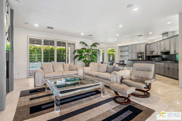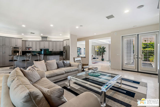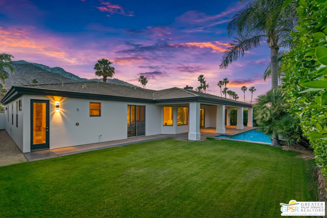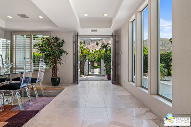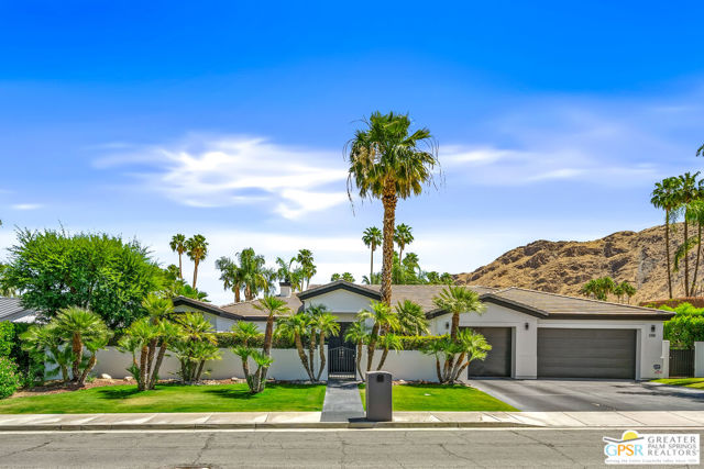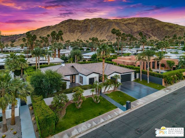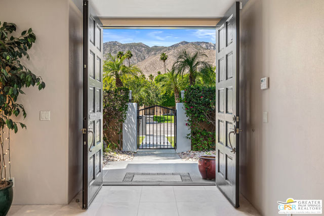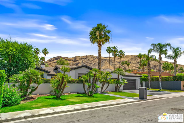 Peaceful, easy living on one of Indian Canyons' most desirable streets. Custom-built entertainer's home opens with a bright, spacious entry that flows into a dramatic great room with fireplace, and panoramic mountain views. The large, open kitchen and formal dining area create an ideal entertaining footprint that extends to the outdoors, where a sparkling pebble-tec pool with waterfall provides a stunning focal point. The split-bedroom floor plan affords privacy: a generous master retreat plus secondary bedrooms, each with its own bath. A private front courtyard offers a quiet, restorative space. This home exemplifies classic Palm Springs indoor-outdoor living.