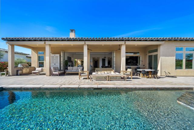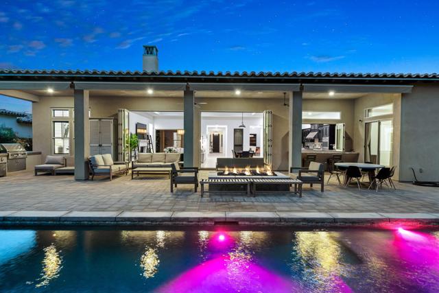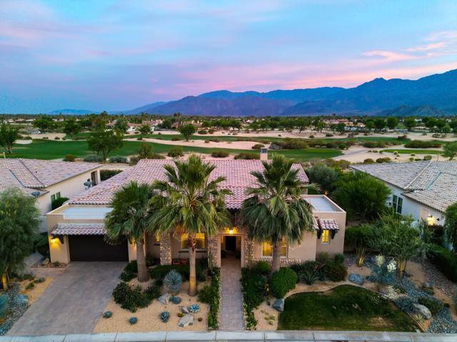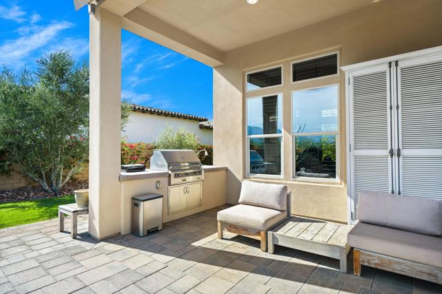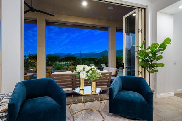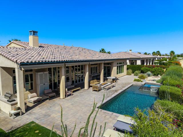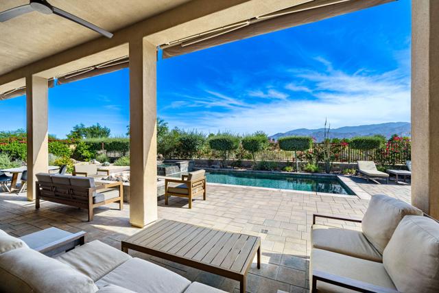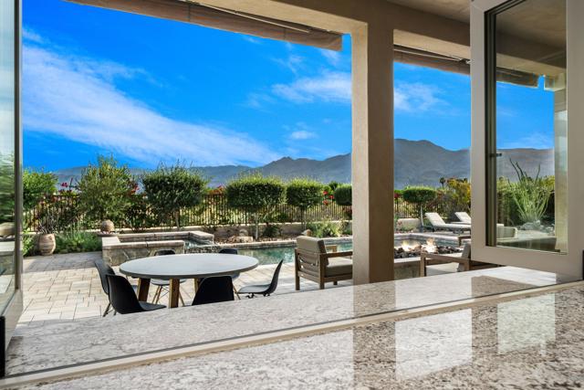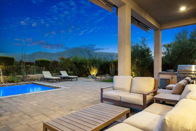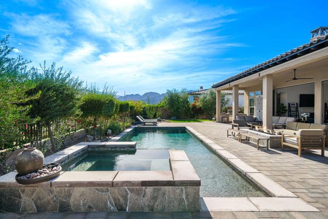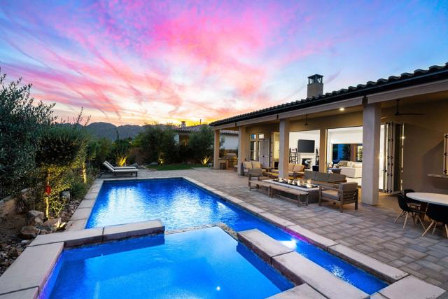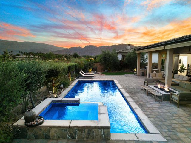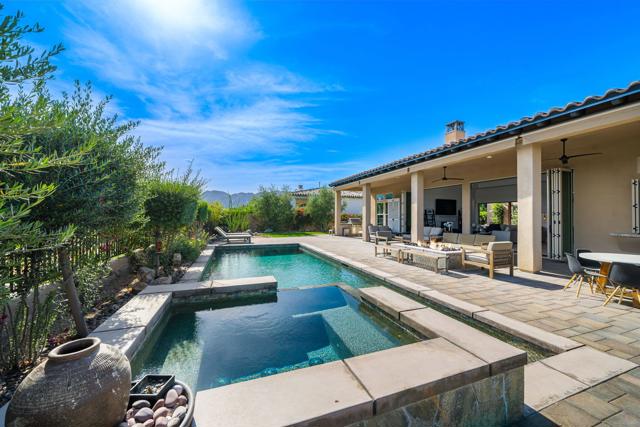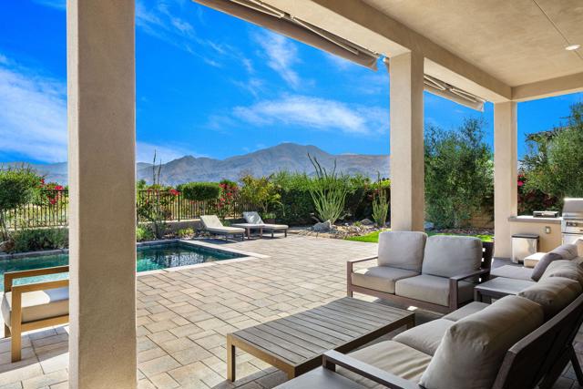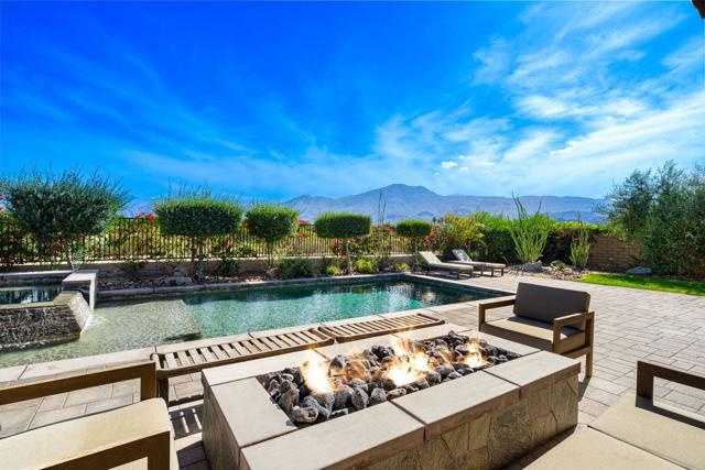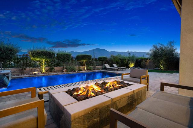 Gorgeous, picture perfect South facing home, with stunning mountain views, located in the desirable enclave of Griffin Ranch in La Quinta. Four bedrooms, four baths plus powder room, in a spacious 3,783 SF, situated on an oversized .33 acre lot. This popular Belmont Plan 4 floorplan features a great room, kitchen and primary suite that all open to the outdoor entertainment and pool areas. The showroom worthy kitchen features a Wolf cooktop, double ovens, a GE Monogram refrigerator, a stainless farm sink and slab granite counters. The great room has 10' bi-fold doors that create the enviable indoor-outdoor desert lifestyle we all covet. The luxurious primary suite features a spa-like bath and huge walk-in closet. Proceeding outdoors, the meticulously maintained entertaining area boasts a Tessera designed pool & spa, Alfresco BBQ and gas firepit. If a lovingly maintained home, effortless entertaining spaces and breathtaking mountain views are on your ''must have'' list, look no further! Come home to Griffin Ranch!