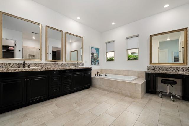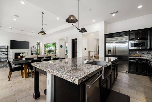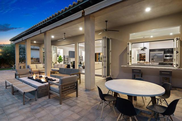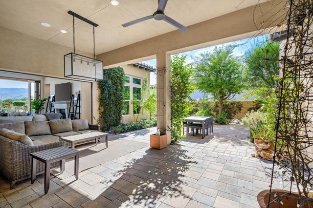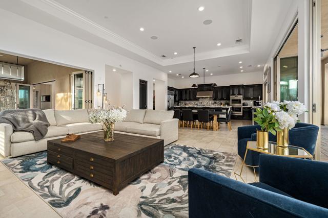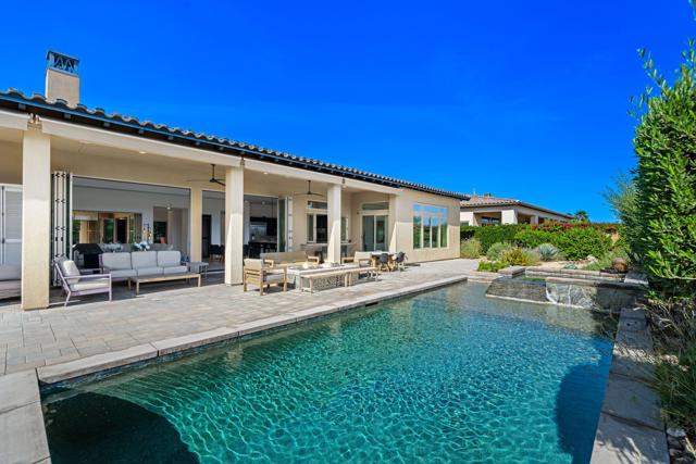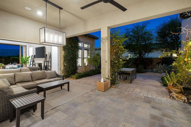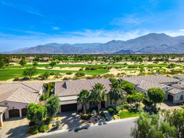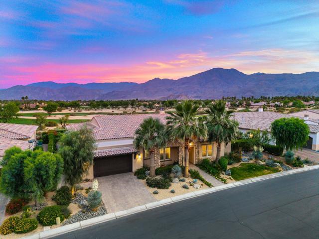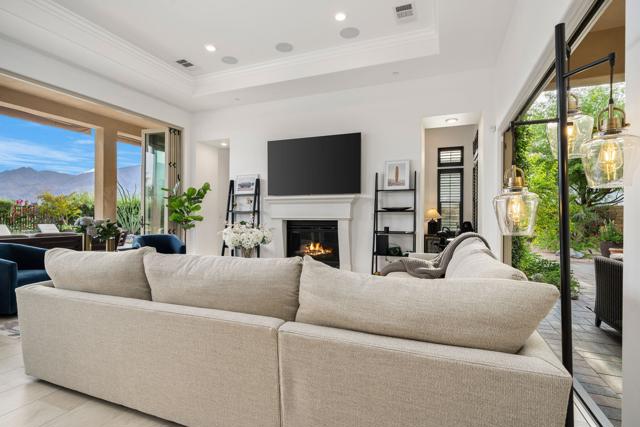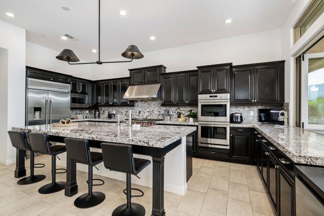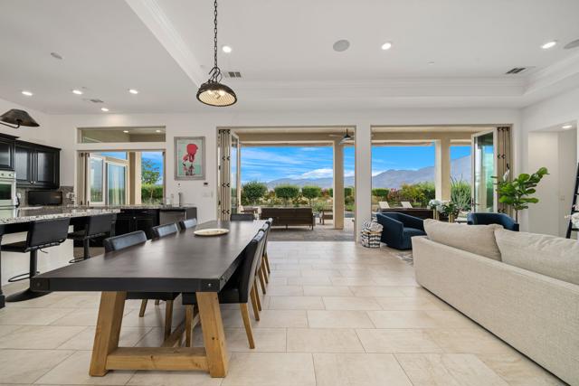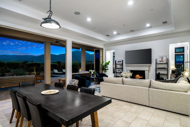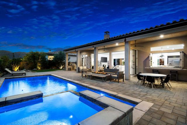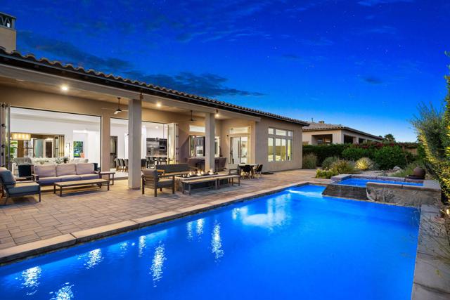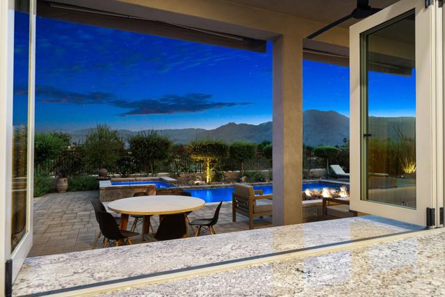 Gorgeous, picture perfect South facing home, with stunning mountain views, located in the desirable enclave of Griffin Ranch in La Quinta. Four bedrooms, four baths plus powder room, in a spacious 3,783 SF, situated on an oversized .33 acre lot. This popular Belmont Plan 4 floorplan features a great room, kitchen and primary suite that all open to the outdoor entertainment and pool areas. The showroom worthy kitchen features a Wolf cooktop, double ovens, a GE Monogram refrigerator, a stainless farm sink and slab granite counters. The great room has 10' bi-fold doors that create the enviable indoor-outdoor desert lifestyle we all covet. The luxurious primary suite features a spa-like bath and huge walk-in closet. Proceeding outdoors, the meticulously maintained entertaining area boasts a Tessera designed pool & spa, Alfresco BBQ and gas firepit. If a lovingly maintained home, effortless entertaining spaces and breathtaking mountain views are on your ''must have'' list, look no further! Come home to Griffin Ranch!