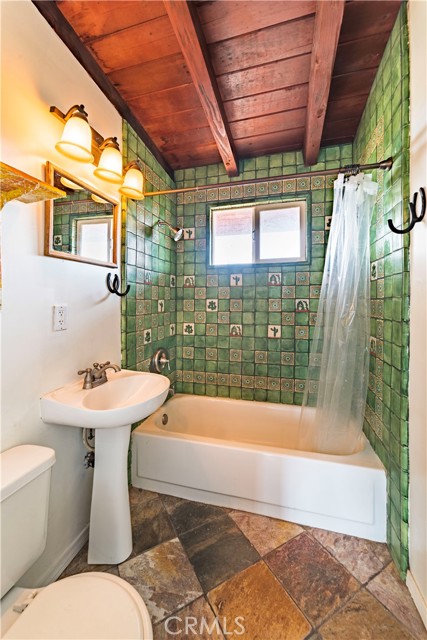 Absolutely charming cabin on five acres! The elevated location will give you panoramic views all around. Features include vaulted wood ceilings, slate floors, custom bath tile work, double French doors with shutters and more! Kitchen has custom sink, brand new butcher block countertops and a propane gas stove. Back of home has a covered patio just perfect for morning coffee enjoying the views. Just behind the home is your very own labyrinth framed by rock cairns. This is the perfect artist retreat! Tax rolls show this home as a single family residence, buyer to verify.