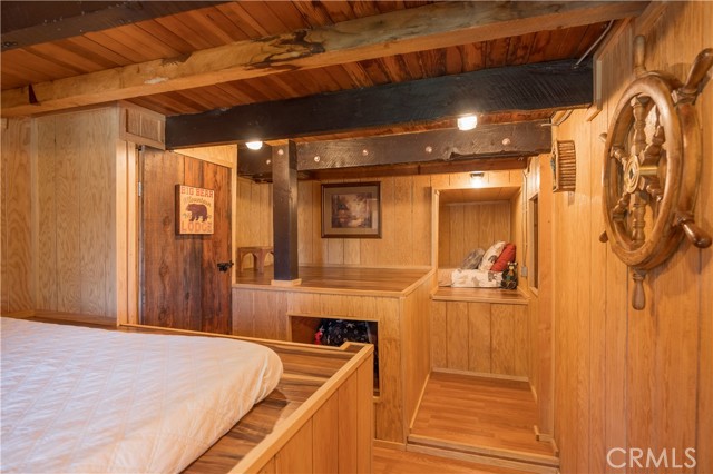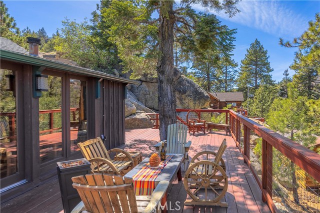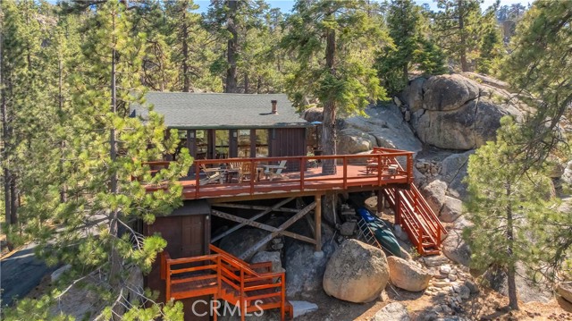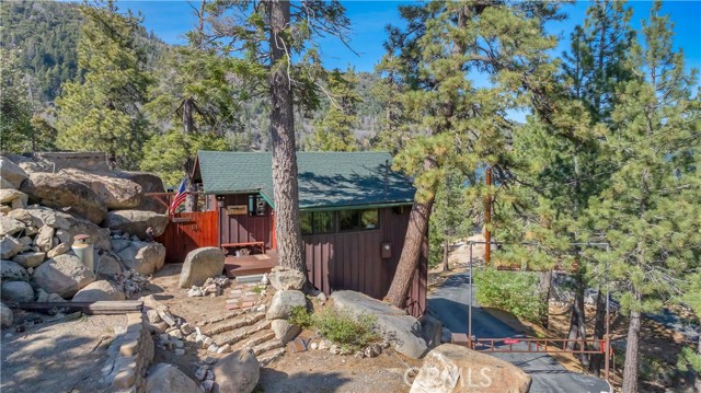 Don't miss this true gem! #65 is a rare time capsule that captures the true spirit of original Big Bear Lake life. Just steps to Lake and Unique Swim Area/Beachfront. This charming retreat offers a nostalgic glimpse into the area’s early days, with authentic character and timeless appeal that’s increasingly hard to find. From the moment you arrive, you’re welcomed by stunning, lake views that create a serene and picturesque backdrop year-round. You can actually see the fireworks from your very own deck! Inside, the home embraces its heritage with classic details and a warm, inviting atmosphere that feels both cozy and full of stories. Don't miss the Multifunctional Iron Wood Burning Stove: Rustic Cooking & Heating Oven. It is amazing! Whether you’re relaxing by the windows overlooking the water or enjoying the peaceful surroundings, every corner reflects the simplicity and charm of a bygone era. Perfect as a getaway or a unique investment, this property is more than just a cabin—it’s a piece of Big Bear history, offering unmatched views and an irreplaceable sense of place. It's one of the few forestry cabins you can access all year around! Don't miss the bonus area downstairs for lots of sleeping spaces and another 3/4 restroom! Access thru hatch, or from lakeside of cabin.