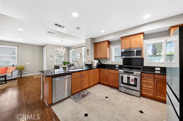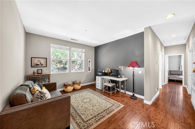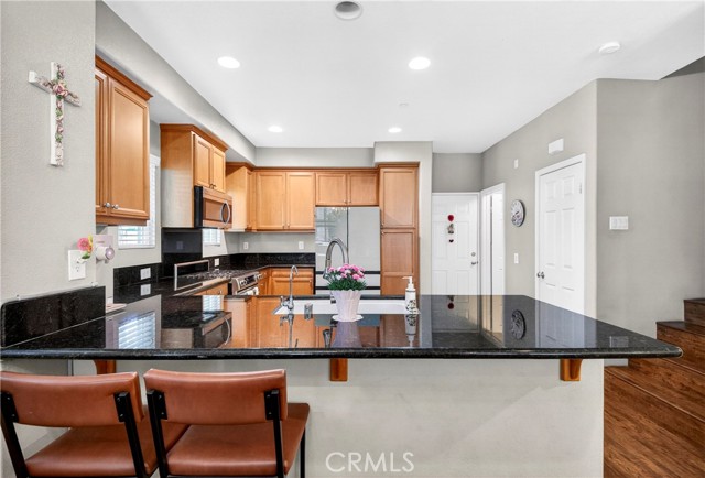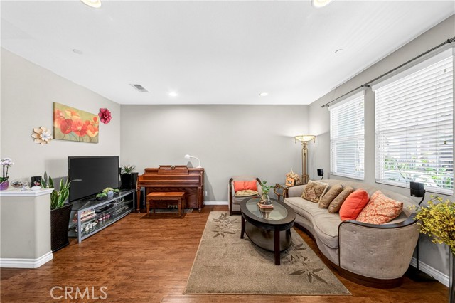 Beautifully maintained, luxurious end-unit townhome located in the prestigious gated community of Founders Walk. This modern residence showcases an open-concept floor plan featuring 3 bedrooms, 2.5 bathrooms, and a versatile loft ideal for a home office, family room, or additional living space. Interior highlights include laminated wood and tile flooring, recessed lighting, and a spacious kitchen with ample cabinetry, granite countertops, and stainless steel appliances. The primary suite offers dual closets and a private en-suite bathroom complete with separate tub and shower, along with dual vanities. Additional features include a convenient second-floor laundry room and direct access to an attached two-car garage with built-in cabinets & storage racks, providing both comfort and functionality. Recent upgrades include a newly replaced water heater and a new garage motor and springs installed in 2025. Residents enjoy resort-style amenities including a pool, spa, clubhouse, playground, picnic areas, and abundant guest parking. Ideally located near shopping centers, restaurants, markets, banks, the Metrolink station, and nearby golf courses, this home offers the perfect blend of luxury living and everyday convenience.