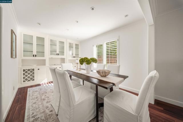 Nestled on a quiet, level street in the heart of San Ramon, this beautifully maintained NORTHWEST-facing single-story home offers exceptional privacy & comfort. Set behind a fully fenced yard, the property feels like a private retreat, ideal for relaxing, entertaining, or everyday living. Thoughtfully designed floor plan features three bdrms and two bthrms, with flexibility for a possible fourth bdrm. An oversized primary suite is filled with natural light, while skylights, Brazilian wood flooring, recessed lighting, and warm finishes enhance the bright, inviting atmosphere throughout. Perfect for daily living and entertaining, the home offers a formal dining room with custom built-in cabinetry and a spacious eat-in ktchn with a prep island, room for a study nook or casual workspace, & direct access to a sun-filled, enclosed sunroom for seamless indoor-outdoor flow. The serene backyard showcases mature landscaping, stone pathways, and multiple seating areas beneath a charming pergola. Move-in ready and meticulously cared for, the home features a 50-year architectural roof, Anderson replacement windows with plantation shutters, copper piping, & a three-year-old Lennox furnace & A/C. W/D included. Ideally located near top-rated schools, trails, shopping, dining, easy I-680 access.
