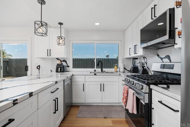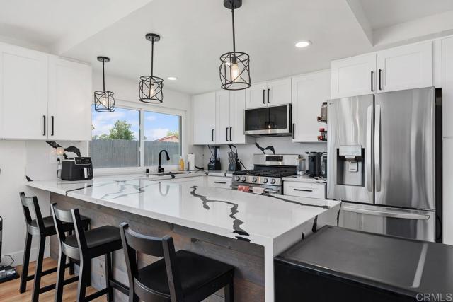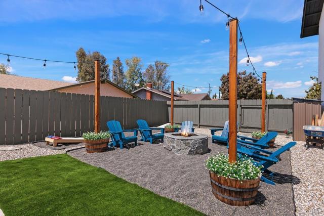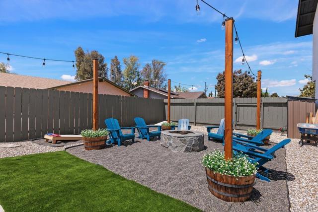 Tucked away on a quiet cul-de-sac, this inviting 5 bedroom, 3 bathroom, two-story home offers the perfect blend of comfort, space, and everyday livability. The bright, open layout is filled with natural light and features vaulted ceilings and a cozy fireplace, creating a warm welcoming atmosphere. The flexible floor plan includes bedrooms both upstairs and downstairs, ideal for guests, multi-generational living, or a home office. The home showcases clean, modern touches throughout and a well-appointed kitchen with new upgraded appliances. Step outside to a private backyard designed for both relaxing and entertaining, complete with a composite deck, covered built in bar area, fire pit, and multiple spaces to gather and unwind. The front yard features low-maintenance artificial turf landscaping, adding to the homes curb appeal. Conveniently located near parks, shopping, dining, and quick freeway access, this home offers the ideal balance of privacy and accessibility.