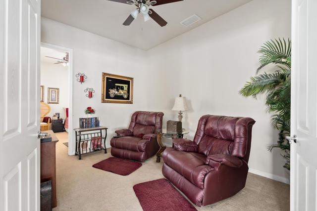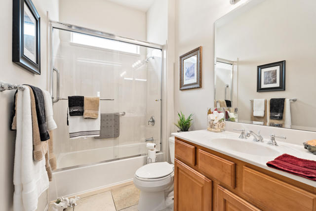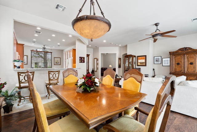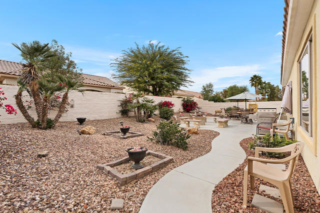 Beautiful popular San Benito floor plan in the prestigious 55+ community of Sun City Shadow Hills. Elegant living with bright, open spaces. The living and dining areas showcase a tasteful mix of tile and hardwood floors. Chef-ready kitchen features granite counters, center island, breakfast bar, recessed lighting, double ovens, built-in microwave and a cozy breakfast nook. Flexible layout includes a den/office plus a hobby room for crafts or a home gym. The primary suite opens to the south-facing backyard and offers a walk-in closet, dual vanities, separate tub and shower. Enjoy a 2-car garage plus golf-cart garage. South-facing backyard features a covered seating area and low-maintenance landscaping, ideal for entertaining or quiet relaxation. Walking distance to the Montecito clubhouse with fitness centers, pools, pickleball and tennis courts, plus an active calendar of social clubs and events. Enjoy a vibrant, maintenance-free 55+ lifestyle where every day brings opportunities for fitness, friendship, hobbies and relaxed desert living.