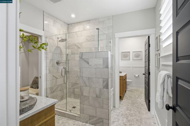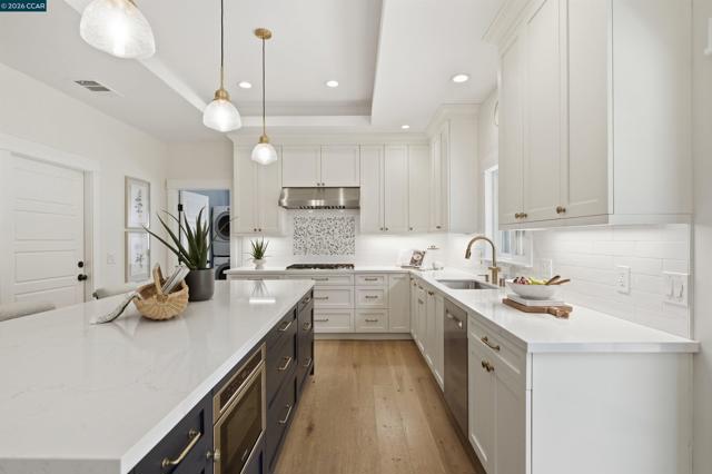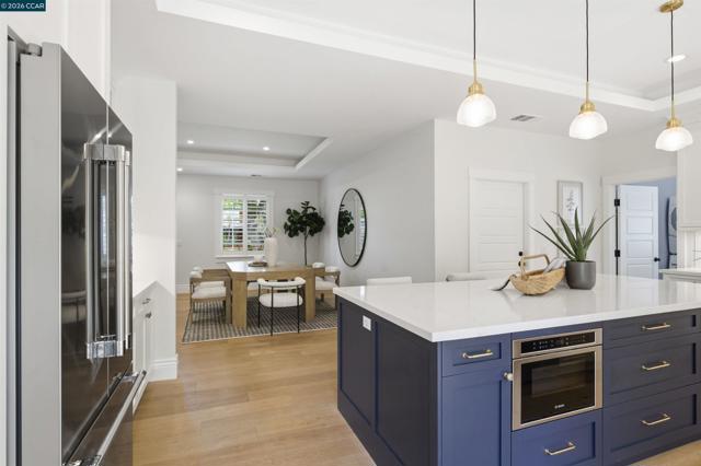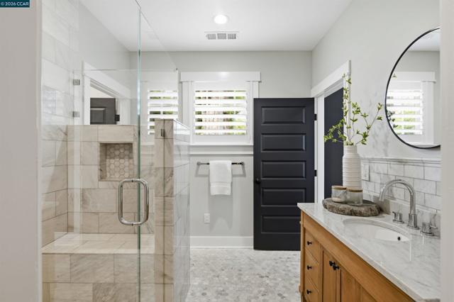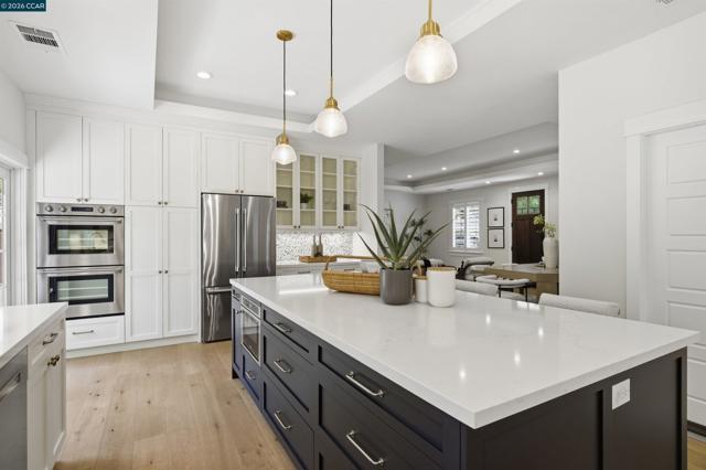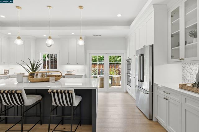 Located in one of the best spots of Gregory Gardens, 1742 Mary Drive offers an exceptional setting with tree-lined streets and close proximity to the trail. Completely rebuilt, this is not your typical Gregory Gardens ranch—featuring soaring ceilings, abundant natural light, and a modern yet warm, vintage-inspired aesthetic throughout. The stunning kitchen is designed for entertaining, with tons of custom wood cabinetry, a large center island, quartz countertops, custom tile backsplash, and premium stainless appliances including a Wolfe gas range and Fisher & Paykel double ovens. Just off the kitchen, a spacious laundry room provides ample storage and convenience. French doors provide access to the lush & beautiful, low maintenance back yard. The primary suite is light-filled and generously sized, featuring a beautifully appointed bathroom with dual vanities, a large walk-in shower with glass enclosure, and a pass-through closet accessible from two sides. Two additional bedrooms are well-sized and inviting. A rare highlight is the walk-in attic—easily accessible with ample lighting, room to walk around. Additional features include white oak hardwood floors, solid wood 5-panel doors, recessed lighting, plantation shutters, fresh interior paint, a custom stamped concrete driveway, and backyard patio surrounded by mature trees. All major systems were replaced within the last 5-8 years, including HVAC, tankless water heater, electrical, and plumbing. Enjoy walkability to downtown Pleasant Hill with easy access to BART, freeways, and everyday amenities. Open Saturday and Sunday 4/25 & 4/26 from 2-4pm. Please join us, we'd love to welcome you home!