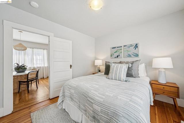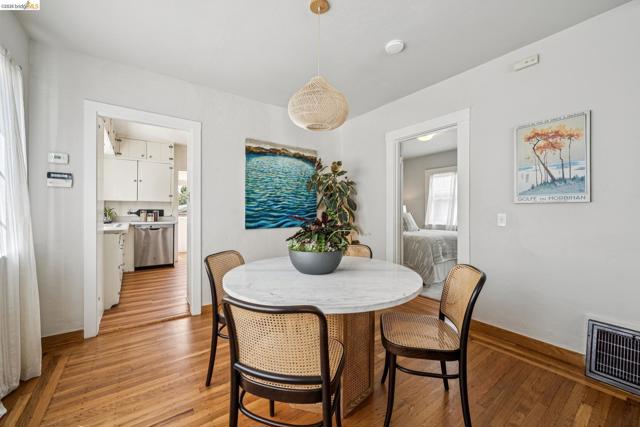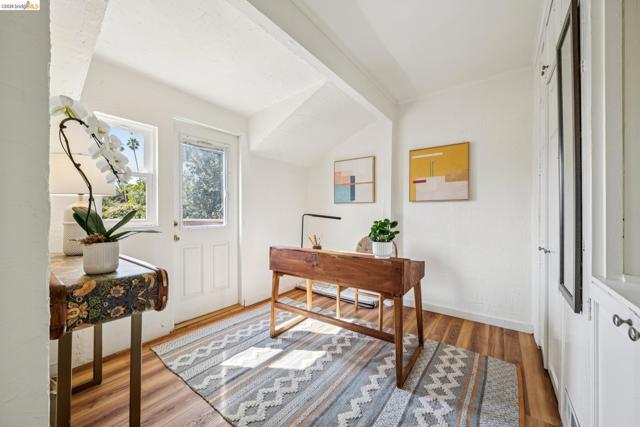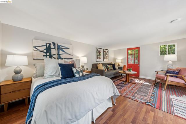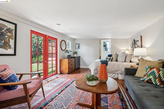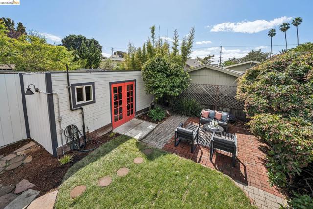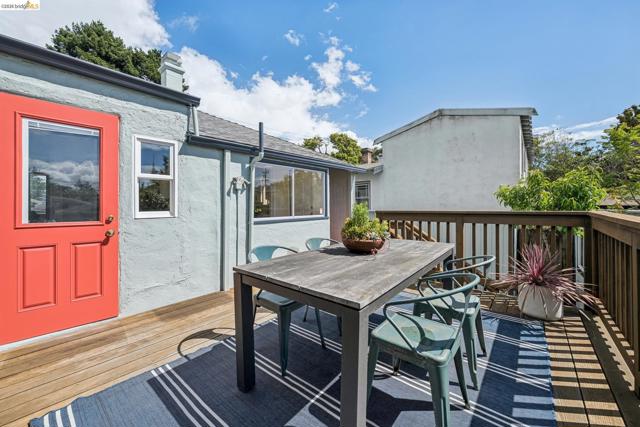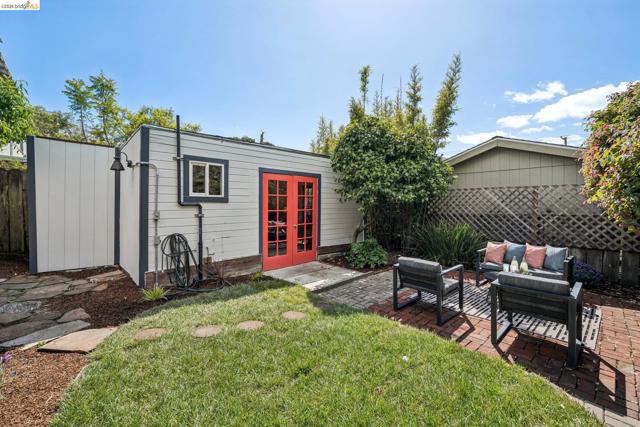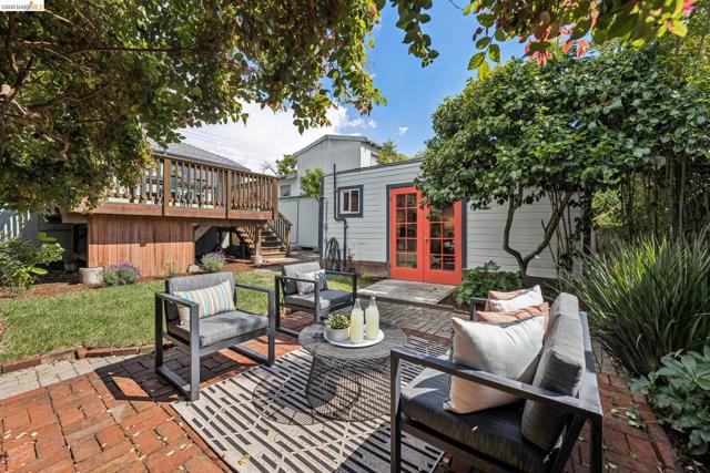 Charming Berkeley bungalow in an unbeatable location just moments from Solano Avenue. This sweet home features beautiful hardwood floors, great natural flow, and a warm, welcoming feel throughout. The living and dining areas blend seamlessly, creating an open and comfortable space for everyday living and entertaining. Two well-positioned bedrooms are connected by a Jack-and-Jill bathroom, offering both functionality and character. The kitchen has a classic Wedgewood stove and an adjoining laundry room, along with an adjacent bonus office space ideal for working from home or creative use. Step outside to a lovely back deck overlooking a cozy backyard with a brick patio, perfect for relaxing or hosting. The detached rear cottage (an extra 259 sq ft) adds flexibility with French doors opening to the yard, plus a sink and toilet, making it a great space for guests, a studio, or additional workspace. With its cheerful personality and abundance of sunshine throughout, this home's availability is a special opportunity in a highly sought-after neighborhood. BESO score: 7