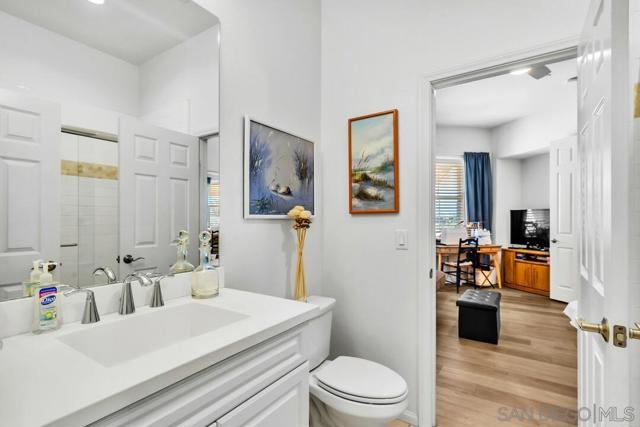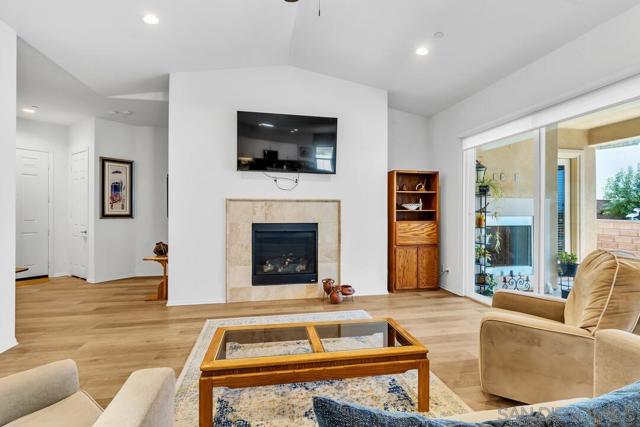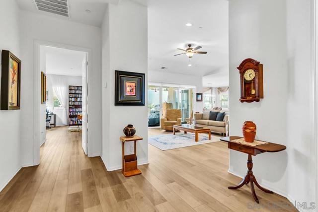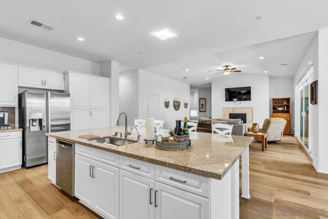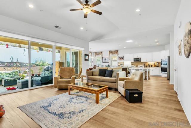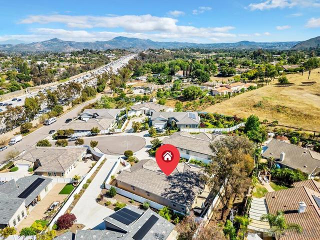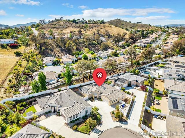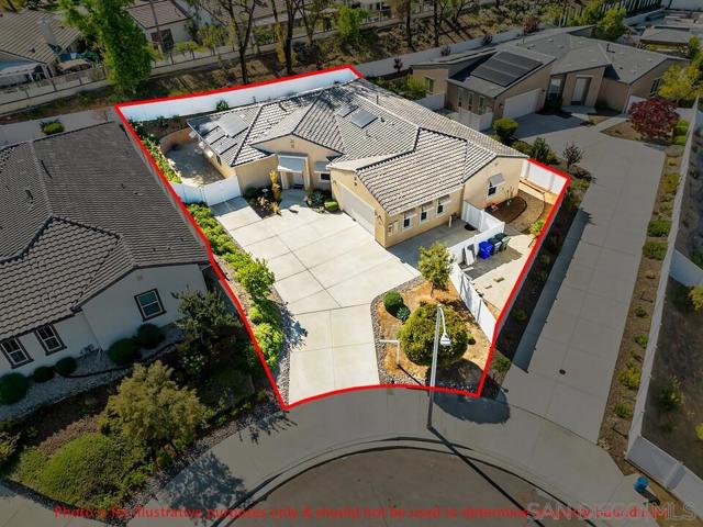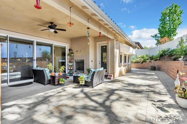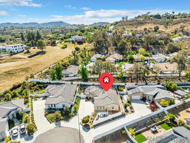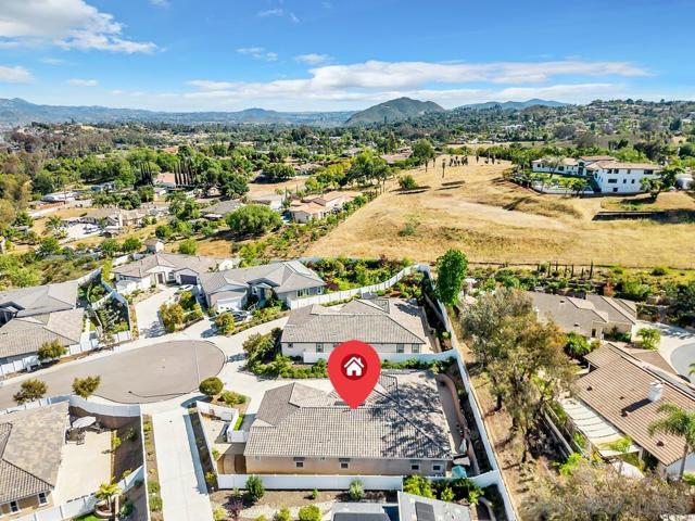 Location, Location, Location! Welcome to 1949 Estancia Pl, a single-level gem featuring 2,615 sqft of living space with 4 bedrooms and 3 bathrooms, perfectly situated at the end of a quiet cul-de-sac in a private South Escondido neighborhood. Built in 2019, this home is incredibly spacious with a seamless, intuitive floorplan. THE FLOW... Upon entry, you are immediately greeted by high ceilings that draw your eyes through the main living area to the expansive kitchen. To your right, a versatile bedroom flexes nicely as a home office with direct bathroom access. In fact, every bedroom in this home has direct access to a bathroom! The primary suite is a true retreat, tucked away at the south end of the home with an ensuite bath, walk-in closet, and a private entrance to the backyard. The heart of the home is the spacious living room, featuring a cozy fireplace and massive sliding doors that lead to a signature California Room—complete with a second fireplace for cool evenings. The kitchen is massive, boasting an oversized island with extra seating, plentiful cabinetry, and a walk-in pantry. Perfectly adjacent is the dining area, which also opens to the California Room. On the opposite side of the kitchen, a hallway leads to the laundry room, the 3-car tandem garage, and the remaining secondary bedrooms at the north end. OUTDOOR LIVING... The backyard is private featuring beautiful retaining walls, fruit trees, lush landscaping, and a relaxing spa. Take advantage of PAID SOLAR and the gated RV parking on the south boundary. Modern, private, and just 5 minutes from the fwy!