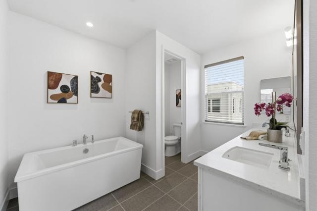 Stunning 3-story 1 Bed 1.5 Bath condominium built in 2023 with integrated Smart Home features and a floor plan designed with distinct communal and private spaces in mind. The open kitchen boasts a complete, matching set of high-end Bosch appliances along with a breakfast bar that seamlessly flows into the living room where large windows bring in tons of natural light. On the top floor is a dream primary suite that satisfies all the ideal features one could ask for - a huge walk-in, spacious standing shower, free-standing tub, separate water closet and dual sinks. The additional landing just outside the primary makes for a wonderful office or entertainment space and a stacked washer/dryer hidden from view ensures seamless integration with maximum functionality. An attached garage deep enough to provide plenty of tandem parking for two vehicles completes this wonderful home. While Foster City is famous for having near-perfect weather year round, the addition of a highly efficient air conditioner ensures your home will stay just the way you like it all year.