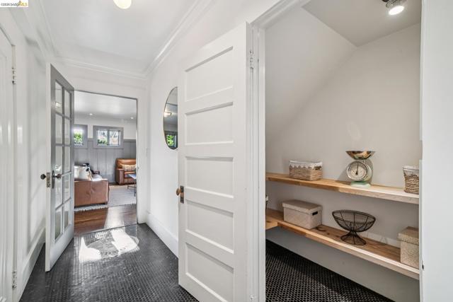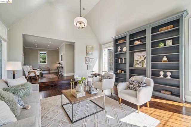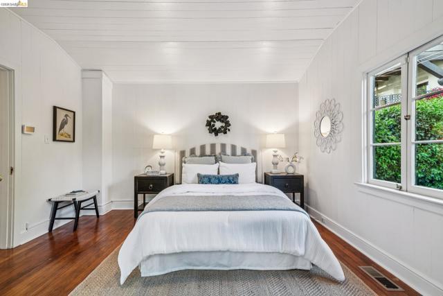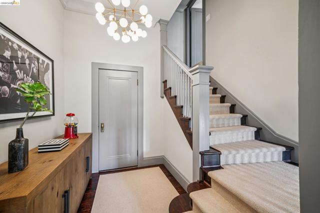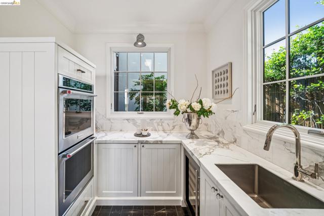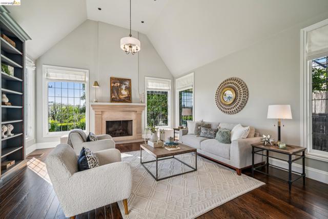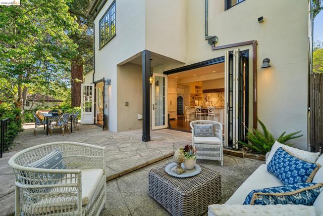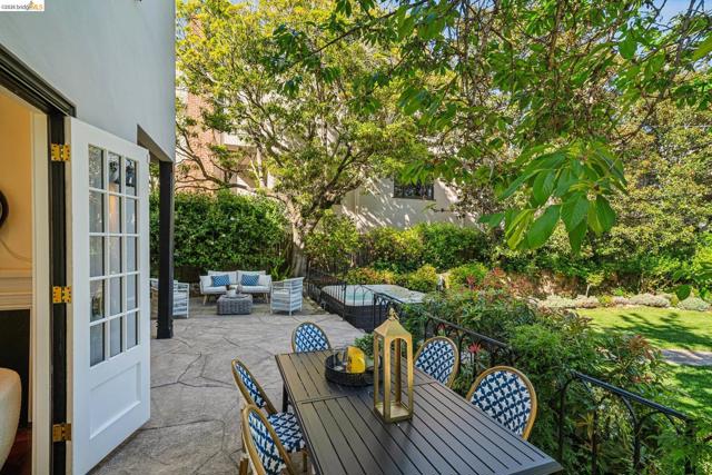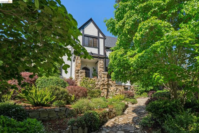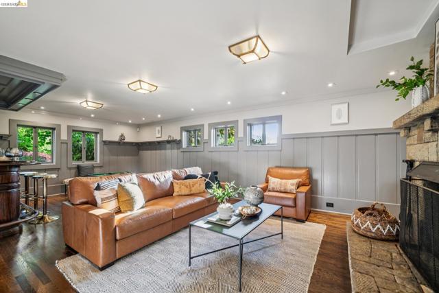 This exceptional six-bedroom estate and detached cottage exemplify the best of the Piedmont lifestyle. Located near top-rated K-12 schools, verdant parks, and the newly re-opened community pool, this 1907 home blends historic nostalgia with a masterfully updated floorplan. Built with original stone from the Rockridge quarry, the residence offers an elegant yet comfortable flow ideal for modern living. The entry foyer leads to gracious spaces with soaring ceilings and a grand central staircase. At the heart of the home, the modern epicurean kitchen and family great room feature professional appliances, a butler’s pantry, and an expansive island. Accordion glass doors create a seamless transition to a patio, hot tub, and lush lawns—perfect for large-scale entertaining or quiet afternoons. The main level also hosts a formal living room with one of the home’s four fireplaces, a den, and a large library/billiards room. West-facing windows capture stunning sunsets over a garden filled with citrus, roses, and fruit trees. The upper level offers four ensuite bedrooms. The primary suite enjoys views of Oakland, San Francisco, and the Bay, while two additional bedrooms feature French doors leading to a copper-inlaid balcony. A large attic provides potential for an additional 1,000+ square feet of development. The lower level serves as a entertainment hub, featuring a historic bar (a former speakeasy?) with a wood-burning fireplace and a climate-controlled wine room. This level also includes a fifth ensuite bedroom with its own kitchen and laundry, ideal for guests. To the east, a light-filled detached two-bedroom cottage sits above a three-car garage. Equipped with its own heating, hot water, and laundry. Two sets of French doors lead to a sunny and cheerful deck.