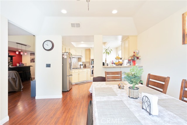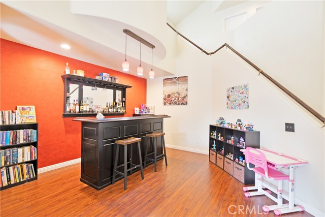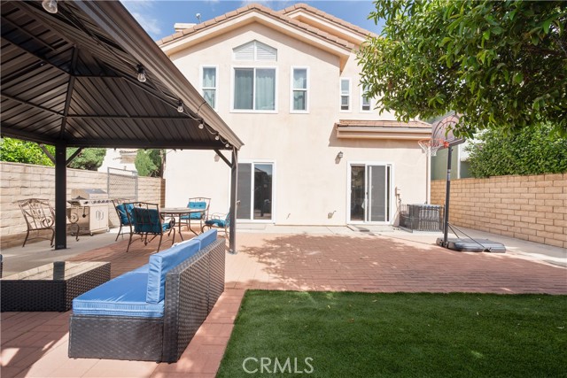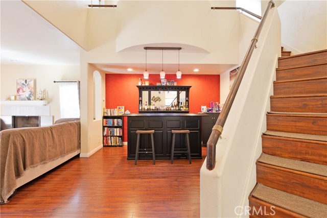 This beautifully upgraded home, located in a desirable gated community, lives like a detached single-family residence offering no shared walls and a private backyard for added comfort and privacy. Truly move in ready, it showcases stylish laminate flooring, granite countertops, upgraded baseboards, recessed lighting, and thoughtful finishes throughout. The unique and functional floor plan features 3 bedrooms and 2.5 bathrooms, highlighted by soaring ceilings and an eye catching custom bar area that makes a strong first impression upon entry. The open-concept kitchen is designed for both everyday living and entertaining, complete with granite countertops, stainless steel appliances, and abundant upgraded cabinetry. It flows seamlessly into the inviting family room, where a cozy fireplace and direct backyard access create the perfect indoor outdoor lifestyle. Upstairs, the spacious primary suite serves as a private retreat, featuring dual vanities, a soaking tub, and two walk in closets with custom builtin organization. Two additional well sized bedrooms and a full bathroom complete the upper level. A finished 2 car garage with durable tile flooring adds both style and functionality, rounding out this exceptional home that blends comfort, design, and convenience within a secure, well-maintained community.