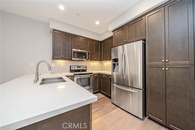 This modern 3-bed, 2.5-bath townhome in the gated Strata Pointe community is move-in ready and loaded with over $40K in upgrades. Top Features: Modern Layout: Open floor plan with high ceilings, a main-floor bedroom/bath, and a private balcony with custom tile. High-End Finishes: Caesarstone quartz counters, upgraded flooring, and stained cabinetry throughout. Smart Home Ready: Includes a RING doorbell, smart thermostat, keyless entry, and solar panels. Resort Amenities: Access to a pool, spa, BBQ area, and playground. Convenience: Attached 2-car garage and quick access to the 5/91 freeways and local shopping. Come see for yourself today!