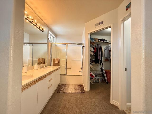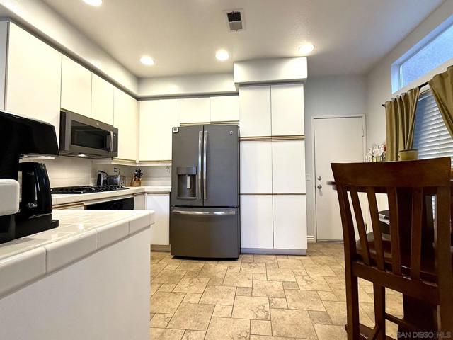 Welcome to Summit Court! This 3 bedroom, 3 full bathroom townhouse-style home is move-in ready and waiting for you. Enjoy a perfect blend of low-maintenance living and single-family comfort, with no units above or below and your own backyard. Enter into the combined living room/dining area with gas fireplace and wood mantle. To the right is the open kitchen with tile flooring and a new range, leading out to the attached 1-car garage with new smart garage door opener (plus 1 assigned carport spot too). Also located on the first floor is a guest bedroom with high ceilings and across the hall, full bathroom. HVAC unit (including condenser) replaced in 2020, with Ecobee smart thermostat. Upstairs a primary bedroom with spacious vaulted ceilings open to bathroom with dual sinks, tub/shower combo, and walk-in closet. Also upstairs is the 3rd bedroom with full bathroom just outside the bedroom door. Off the living room, upgraded Bali sliding shades allow access to the patio area and quaint backyard with brick masonry enclosed grass area. Complex features guest parking, clubhouse, pool and spa, plus a BBQ area and playground. Nearby is shopping, restaurants, and grocery stores including the new Trader Joe's coming soon to Anaheim Hills! Such a great place to call home.