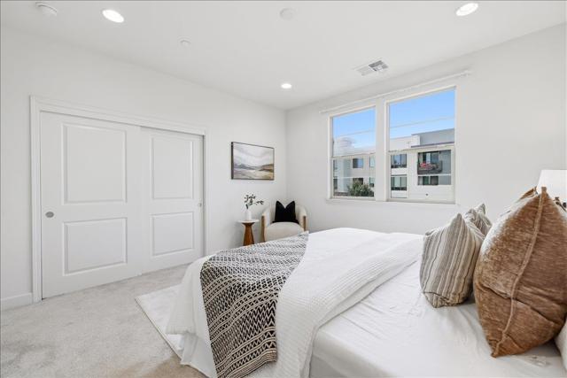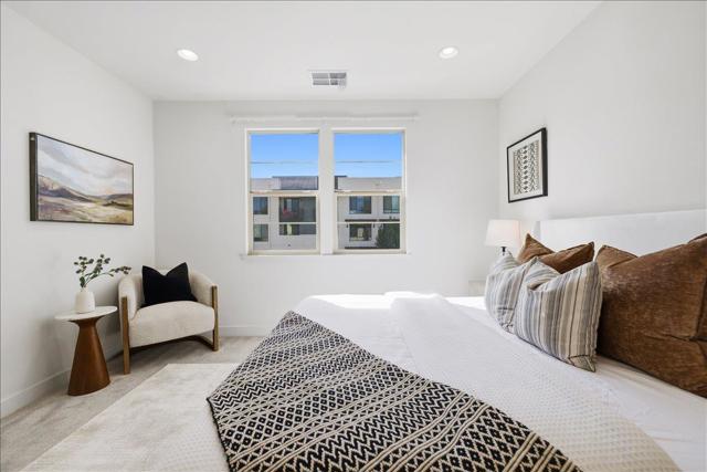 Delightful townhouse beside Central Park. End unit with 23 windows; natural light floods in from all angles. Open floor plan on the second level, complete with a spacious modern design kitchen boasting a huge island and a walk-in pantry. Lots of storage. The adjacent living room seamlessly extends onto a balcony, perfect for enjoying California sunshine. Master bedroom suite with a double sink vanity and a spacious walk-in closet. The second suite also located on the third floor. East-facing windows make the second bedroom bright. Descending to the first floor, you'll find the third bedroom with a private bathroom and a walk-in closet, offering privacy and versatility. Additional features include outlet for an EV charger, side by side garage, heated swimming pool, spa, BBQ area, and playground in the community. And with its prime location, you're just moments away from major tech companies like Apple, Nvidia, Google, Amazon. Walking distance to META Shuttle stop. Close to private schools: Stratford, Challenger, Basis, Monticello. Walking distance to Central Park, Library, Magical Bridge Playground, tennis courts, basketball courts, soccer fields, Olympic-size swimming club, community center, Safeway, restaurants, stores. HOA also covers the garbage fee.