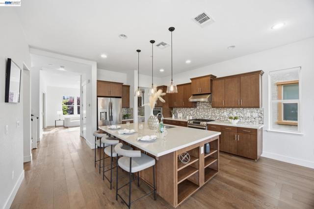 A luxury ELEVATOR inside this beautiful home makes it the perfect find for those seeking multigenerational living and penthouse-style California living. Rarely does a home offer this combination of space, sophistication, and convenience. Set on a prime corner lot enveloped by mature trees, this exceptional residence has had only one owner and pride of ownership is abundant. The private elevator easily makes all three levels accessible. Step onto the stunning balcony, where a canopy of trees creates a serene, private escape — the perfect setting for morning coffee or evening cocktails in the fresh Pleasanton air. Below, new turf and three generous fruit trees add more greenery. Inside, the chef’s kitchen offers serious entertaining with a huge island and generous counter space, with a seamless flow into the main living areas. The primary suite is a private sanctuary, complete with a spa-inspired bath designed to help you unwind. A dedicated media room rounds out the experience, perfect for movie nights or game-day gatherings without sacrificing a single bedroom. Located in one of Pleasanton’s most sought-after neighborhoods, this home is a few minutes walk to grocery stores, restaurants, sports parks, walking trails and the Alameda County Fairgrounds. The property sits within the boundaries of top-rated schools that consistently rank among the best in the East Bay. And don’t miss the resort-quality clubhouse with pool, hot tub, gym and community rooms. Commuters will love the easy access to I-580 and I-680, placing Silicon Valley, San Francisco, and the broader Bay Area well within reach — without the premium price tag. This is refined Tri-Valley living at its finest.