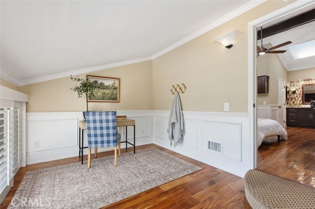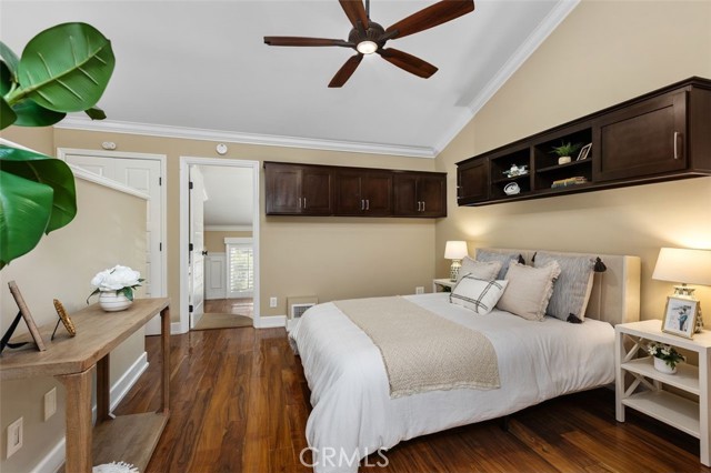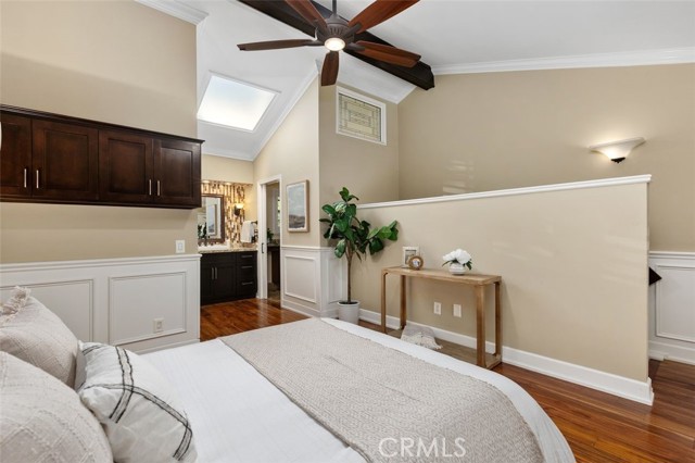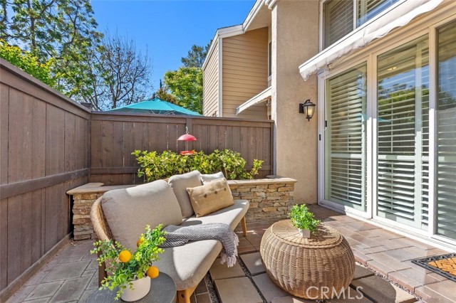 Nicely upgraded 1 bedroom plus office townhome in The Lakes community of Irvine. This 1 bedroom, 1.5 bath home offers a rare upstairs office, private fenced patio, and more than $75,000 in improvements. The remodeled kitchen features granite countertops, stainless steel appliances, updated wood cabinetry, extra storage, floor-to-ceiling pantry space, breakfast bar, pendant lighting, and full porcelain tile backsplash. The main living areas offer hardwood floors, recessed lighting, smooth ceilings, plantation shutters, custom wainscoting, crown molding, paneled doors, and a boxed staircase with wrought iron railing. Ceiling fans upstairs and downstairs add comfort. Upstairs, the vaulted primary suite includes a skylight, walk-in closet with organizer, built-in wall cabinetry, and a remodeled bathroom with granite counters, updated vanity with a modern vessel sink, stacked-stone backsplash, framed mirror, and custom walk-in shower. The separate office adds valuable flex space for work, guests, hobbies, or storage. The private fenced patio, one of only 30 in the community, offers paver hardscape, raised stone planter, mature landscaping, retractable awning, built-in BBQ counter, and permanent gas hookup. Additional features include updated HVAC, partial dual-pane windows, GE stackable laundry, smart thermostat, and designer two-tone paint. The Lakes is known for its streams, mature trees, and scenic surroundings, with community amenities that include pools, spas, tennis courts, and HOA dues that include water and trash service. Conveniently located near shopping, dining, trails, and freeway access. No Mello-Roos and low tax rate.