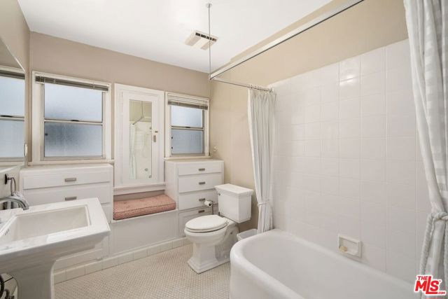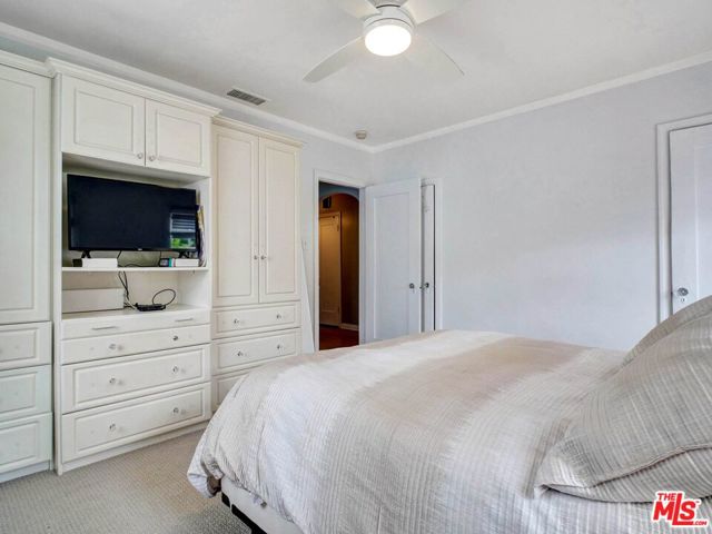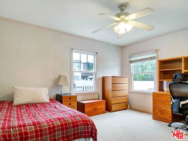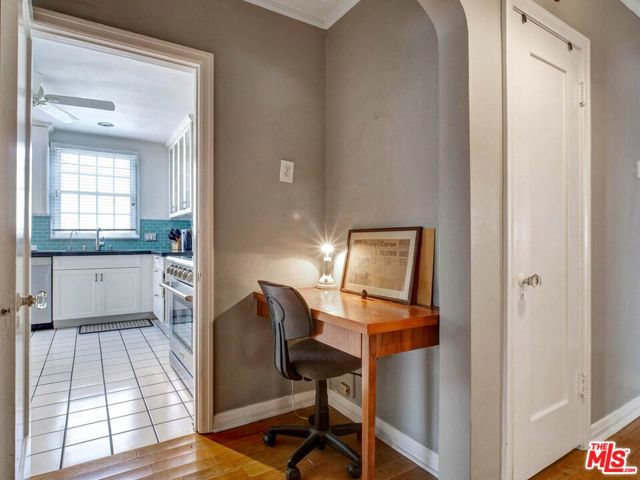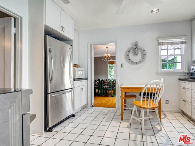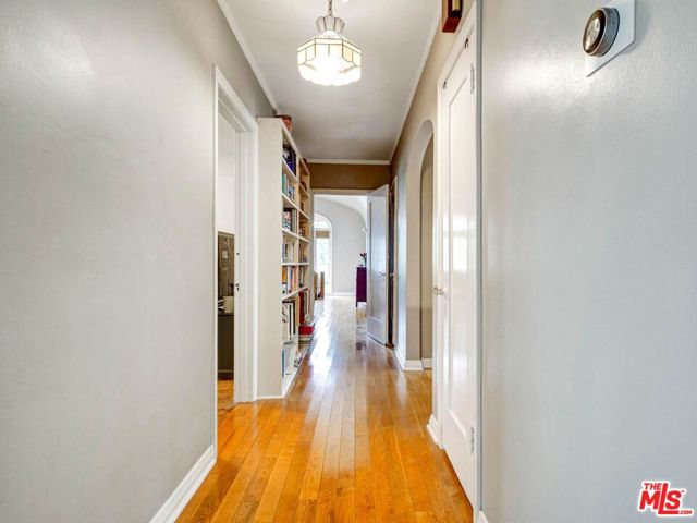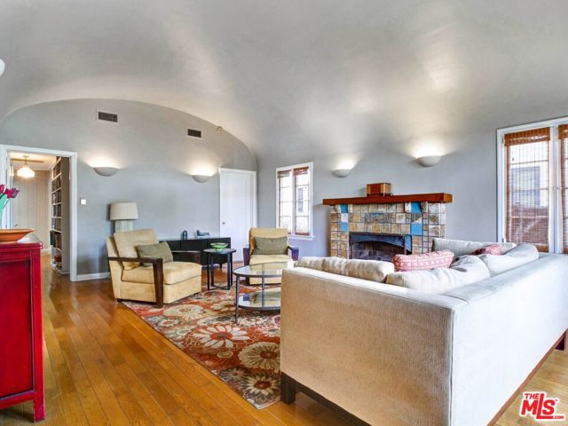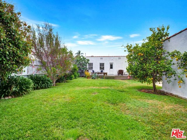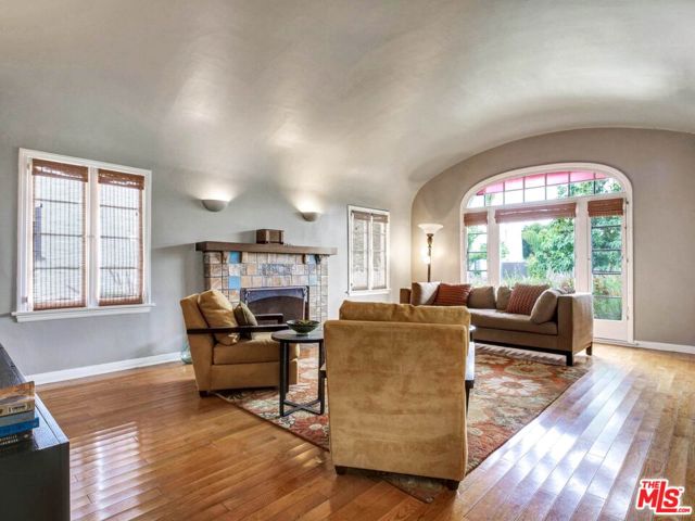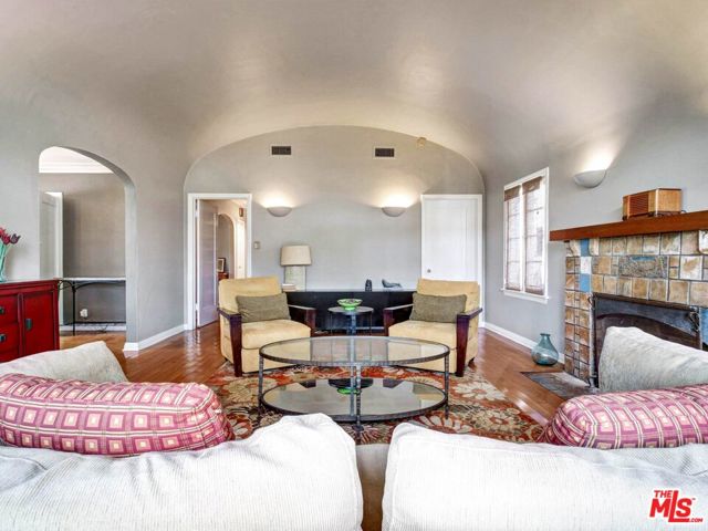 This beautiful Spanish style 3 Bed + 2 Bath home is situated in the Carthay Circle neighborhood and boasts a serene and charming atmosphere with indoor and outdoor space for comfortable living and entertaining. The front yard is designed with drought-tolerant landscaping, enhancing its curb appeal. The covered patio is perfect for relaxation or engaging with neighbors. Stepping inside, the living room serves as the focal point of the house, with a stunning high coved ceiling, a large front window that invites natural light into the room and a fireplace, which adds to the home's character. Adjacent to the living room is a formal dining room, adorned with architectural details on the moldings, providing an elegant setting for hosting meals and gatherings. The gourmet kitchen is equipped with sleek countertops and modern stainless steel appliances, ensuring a functional and stylish cooking space. A central hallway includes an office nook and a built-in bookshelf, adding to the overall convenience and utility of the house. This hallway leads to the three bedrooms, ensuring privacy from the main living areas. The primary suite is a peaceful retreat with its own ensuite bathroom that opens up to the backyard. The remaining two bedrooms are spacious and full of charm. The backyard features a wrap-around deck that's perfect for entertaining guests or lounging outdoors. It is surrounded by mature fruit trees and a grassy lawn that provides ample room for outdoor activities and play. The location of the house is ideal, as it sits at the epicenter of the Miracle Mile, West Hollywood, and Beverly Hills neighborhoods. This means that residents have easy access to a variety of amenities, restaurants, shopping, and cultural attractions. This home is a wonderful blend of historical charm, modern convenience, and a peaceful outdoor oasis, making it an attractive and desirable place to call home. Property is located in a HPOZ.