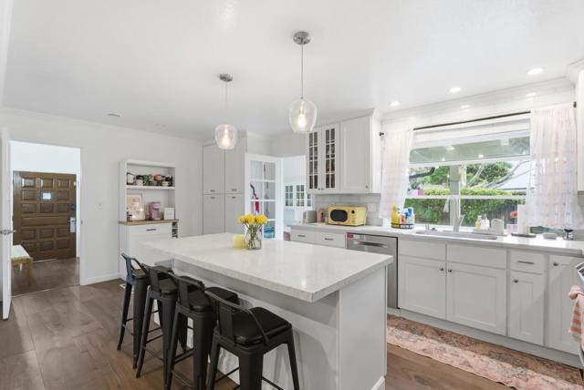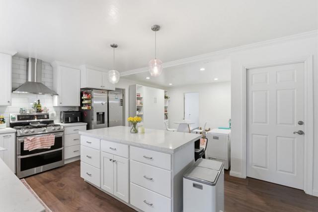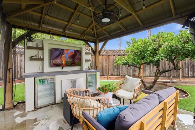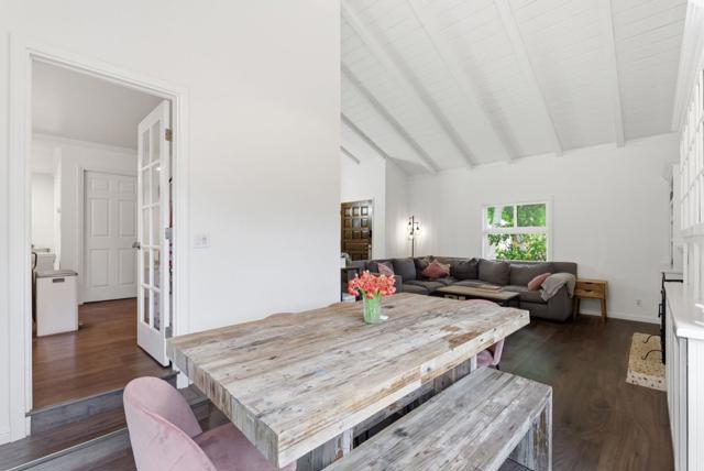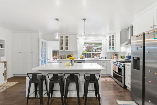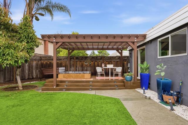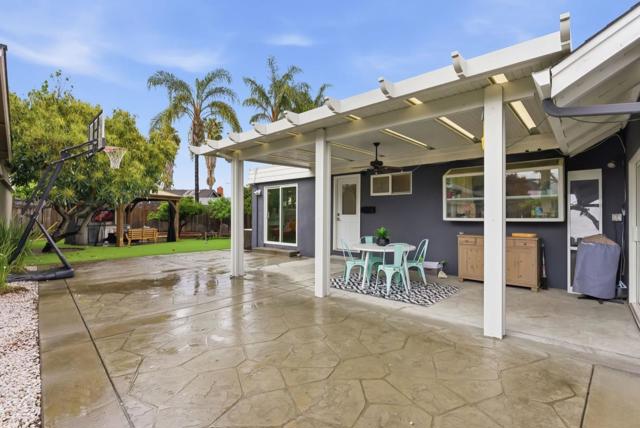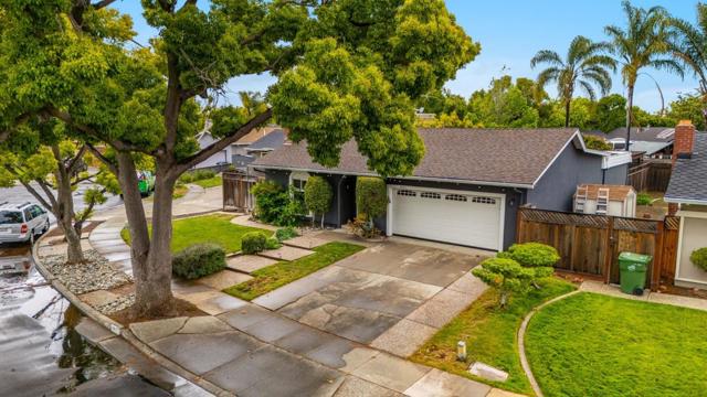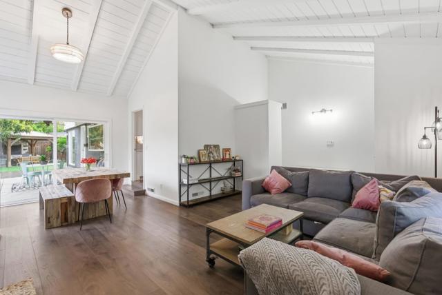 Welcome to Shreen Court, a peaceful cul-de-sac in one of Cambrian's most sought-after neighborhoods, where comfort and convenience align beautifully. A cheerful yellow front door sets a warm tone as you enter this thoughtfully designed, open floor plan. The light-filled living and dining areas showcase vaulted shiplap ceilings, a cozy fireplace, built-in hutch, and seamless backyard access perfect for relaxing or entertaining. The updated kitchen offers modern amenities, ample workspace, and flows into the inviting family room with a discreet Murphy bed. A serene home office with two skylights provides an ideal work-from-home retreat. The spacious primary suite features a walk-in closet, backyard access, and a beautifully updated bathroom with dual sinks and extra large shower. Two additional bedrooms, a guest bathroom, and yard access complete the layout. The expansive backyard is designed for indoor-outdoor living with mature avocado and orange trees, a private patio, covered lounge with TV and refrigerators, and a deck with hot tub. Close to shopping, dining, parks, and top schools, with easy commute access this is California living at its best. Truly a must see home! (Some photos have been altered.)