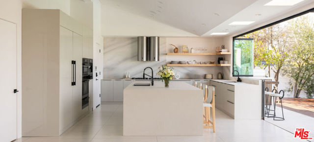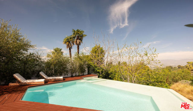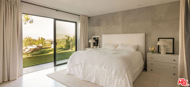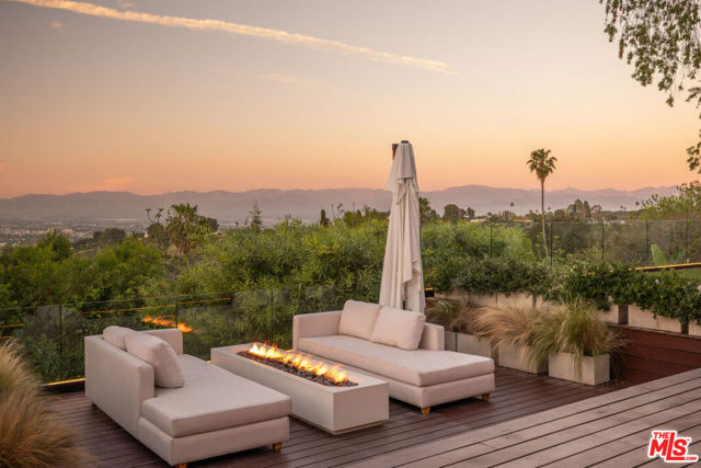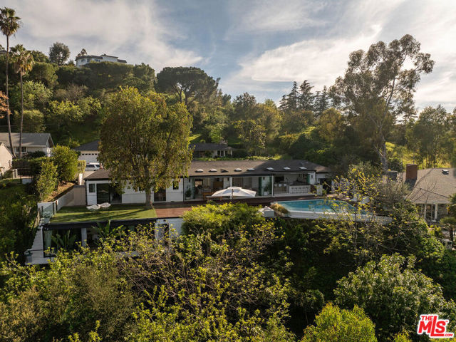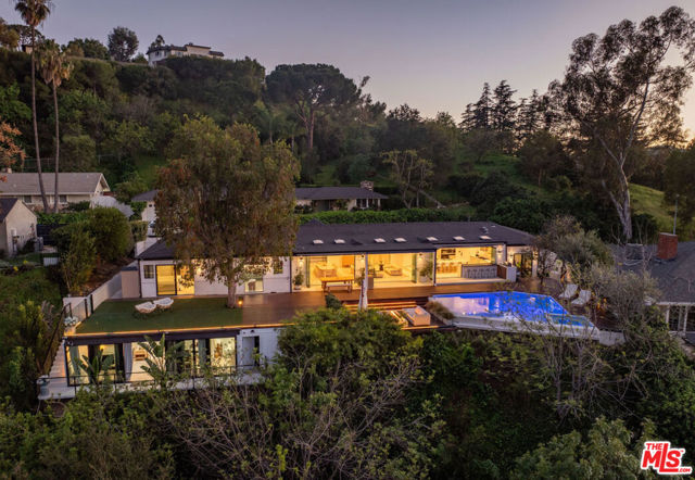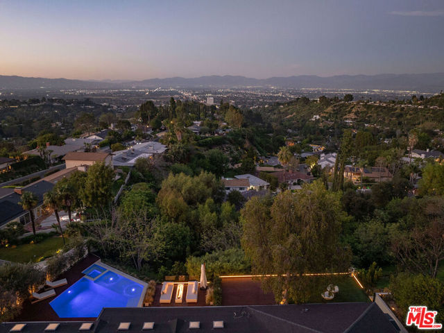 Introducing "The Scadlock MCM," an exceptionally renovated Mid-Century Modern residence ideally positioned on one of Sherman Oaks' most coveted view streets, offering breathtaking north-facing valley vistas enjoyed from nearly every vantage point. Rebuilt from the studs with meticulous craftsmanship, this architectural retreat blends timeless designer finishes with modern luxury and thoughtful functionality. Dramatic 14-foot vaulted ceilings with skylights flood the home with natural light, while expansive large-format Italian flooring and custom walnut built-ins create a warm modern aesthetic throughout the living spaces. The chef's kitchen features premium Miele appliances including dual stovetops, double ovens with steam capability, warming drawers, and a built-in espresso system, complemented by a Sub-Zero refrigeration system and striking Neolith Spanish stone waterfall countertops. Designed for privacy and comfort, the home features SolidCore accordion glass doors, sound-insulated interior walls, and glass hallway doors separating the sleeping quarters from the main entertaining areas. Outdoor living showcases a saltwater infinity-edge pool with Baja shelf, wood decking, fire pit lounge, and outdoor kitchen, surrounded by mature citrus trees. A private detached guest house evokes the feeling of a Bali treehouse retreat, ideal for guests, studio, or wellness space. A dedicated fitness room frames the valley views while a fixed glass panel into the garage creates a striking architectural car gallery moment. Additional amenities include 400-amp electrical service, Lutron smart lighting, Sonos audio, EV charging capability, and advanced fire protection safeguards featuring roof-mounted sprinkler systems and perimeter fire defense protection. Located within the award-winning Roscomare Road Elementary School District and close to the premier dining, shopping, and entertainment the Valley has to offer, with convenient access to the Westside and Beverly Hills. Truly one of the most compelling offerings in the area at this price point. Can be delivered furnished or unfurnished.