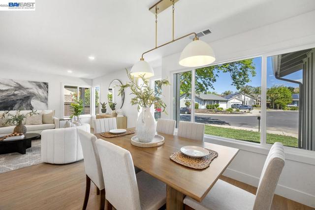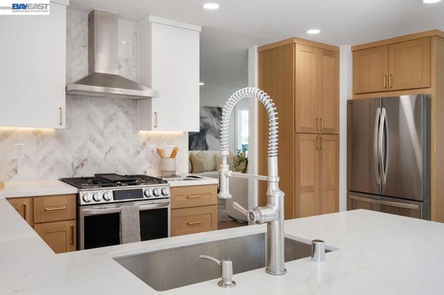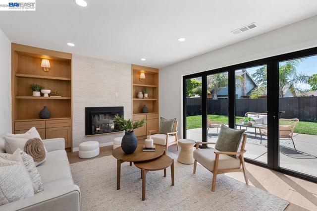 Welcome to your Foreverhome at 5569 Haggin Oaks Ave, the kind of place where real life settles in and stays awhile. Tucked into Greenville North, one of Livermore's quieter pockets (and a quick hop to Vasco), this single-family home has been fully reimagined inside and out. Start with the basics done right: new roof, fresh landscaping on automatic irrigation, and a front facade that turns heads without trying too hard. Step inside and the story really gets good. The kitchen is the heart of it. White oak, thin-framed shaker cabinets. Quartz counters. A chevron marble backsplash that pulls the whole room together. All-new appliances, so the kitchen works as good as it looks. In the family room, a new electric fireplace with custom built-in cabinetry anchors the space. A 10-foot aluminum bi-fold accordion door folds away entirely, turning the family room and backyard into one seamless space. Morning coffee on the patio or evening dinners that spill outside without anyone getting up to open a door. It's all on the table now. Out back, a new concrete patio, raised garden boxes with their own irrigation (hello, homegrown tomatoes), and a shed for the extras round out a yard built for slow weekends and busy ones alike. Fully remodeled bathrooms, new LVT flooring throughout, and thoughtful upgrades tying it all together mean this isn't just move-in ready. It's live-in ready. The kind of home where you unpack once, plant your garden, and let the good stuff happen. Welcome home.