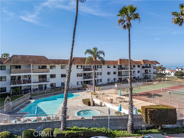 Fabulous location across from the Municipal Golf Course and near dining. Relax on your balcony and enjoy views of the ocean, Catalina, hills, tennis courts, pool and golf course all at once? HOA amenities include a secure building, pool, tennis, spa, rec room, men's and women's workout rooms, guest parking, covered parking with storage and secured entrance. Near beaches and State Park. Washer and dryer are included. Large rooms with fireplace in living room. Second story unit with elevator or stair access. Water, trash, exterior maintenance, insurance and basic cable are already included in the HOA fees. Talk about convenient! Brand new paint. Centrally positioned between the cultural jack pots of LA and San Diego, San Clemente is one of the best kept secretes on the Southern California coastline. Ocean Fairways is near San Luis Ray Park, Vista Bahia Park, the surfing pleasures of Califia Beach and the quaint charms of downtown San Clemente. Throw in the proximity to world class destination beaches like Newport, Corona del Mar, Laguna Beach and Huntington Beach and you get the idea. Where else can you find an ocean influenced home for under $1 million?
