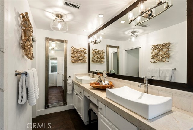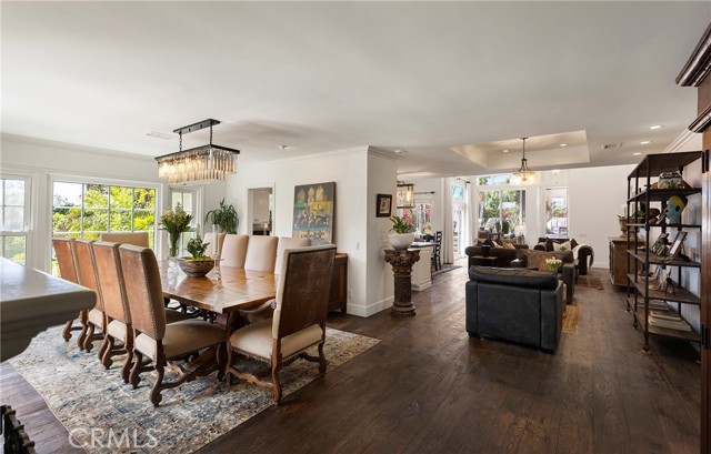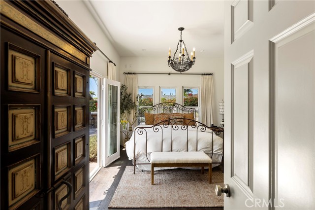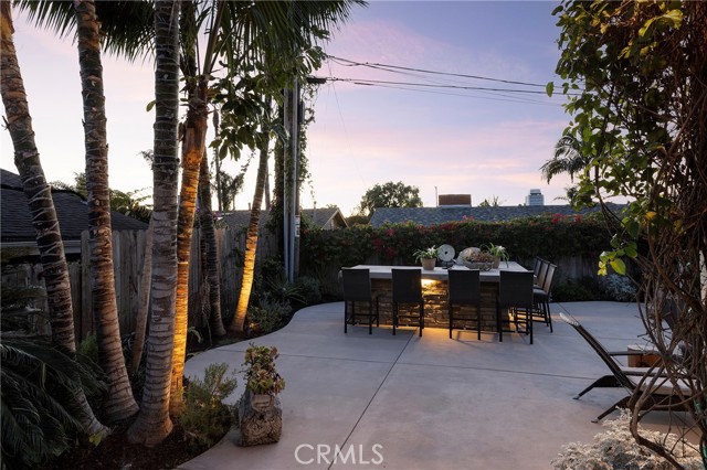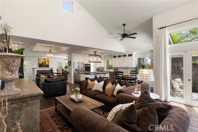 A truly quintessential Southwest San Clemente beach house, this highly upgraded single-level home is truly stunning! With several major remodels completed since 2015 inside & out, pride of ownership is apparent in every detail. Upon arrival, an elevated storybook home attracts you to it with old-growth trees, a sprawling lawn, brick accents & carriage garage door. Inside, a truly sophisticated interior sets the standard of what’s to come. An ocean-view dining room is warmed by a marble-cladded fireplace. Natural light floods the interior with mullioned windows & French doors that access the relaxing exterior sun deck. Rich, rustic wood floors unite the interior living spaces, leading to a massive great room. The kitchen, informal dining, living & lounging all share one spectacular living area enhanced by soaring vaulted ceilings. Sophisticated design choices were made including artisan light fixtures, high-end window treatments & hardware, & vintage mirrored barn door. The kitchen features newer appliances, crisp white cabinetry, ample granite counter space, island with bar seating, tumbled limestone backsplash, & glass-faced uppers. Down the hallway are two well-appointed guest bedrooms (one ensuite) & two updated baths. The light-filled primary suite is truly relaxing & private with picture windows, high ceilings, & large French doors that spill out to the fire-warmed patio. The spa-like ensuite bath features a huge walk-in shower with dual shower heads & vanities, all finished in limestone with massive mirrored wall, stainless fixtures, & private water closet. The backyard offers the ultimate privacy, completely reimagined with all new hard/softscaping. New patios & drainage, mature palms & landscaping, a significant stone-cladded fireplace, garden lighting, communal in-line gas fire pit, tranquil water feature, considerable concrete bar top (seats 10) with built-in BBQ, storage, & refrigerator, 8-person spa, all with direct access to a private deck. The spacious roof deck accommodates secluded lounging & dining with spectacular sunset & direct ocean views. Other values: A/C, presidential roof, newer windows, mirrored closets & primary walk-in closet built-ins, updated lighting & fans, indoor laundry, dog run, & a wonderful 3-bed, 3 full bath all on one level. The laidback Southwest SC lifestyle with easy access to sandy beaches, fine dining, the 2.5 mile beach trail, world class surfing at Trestles & great community, this home offers that opportunity!