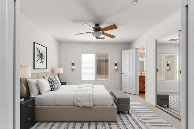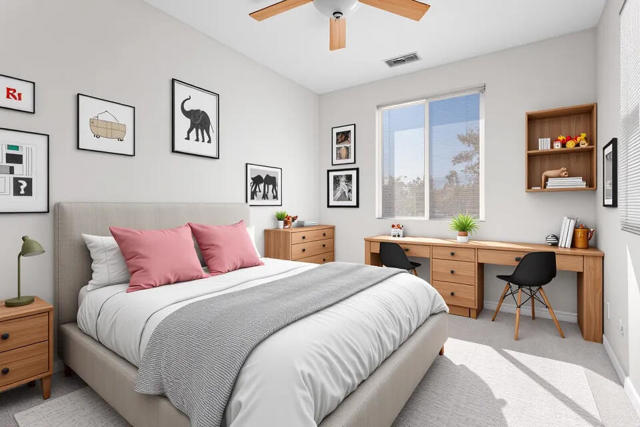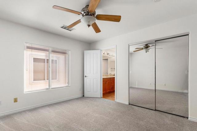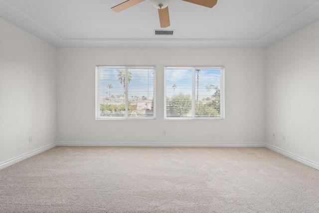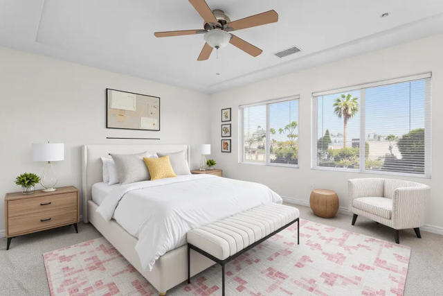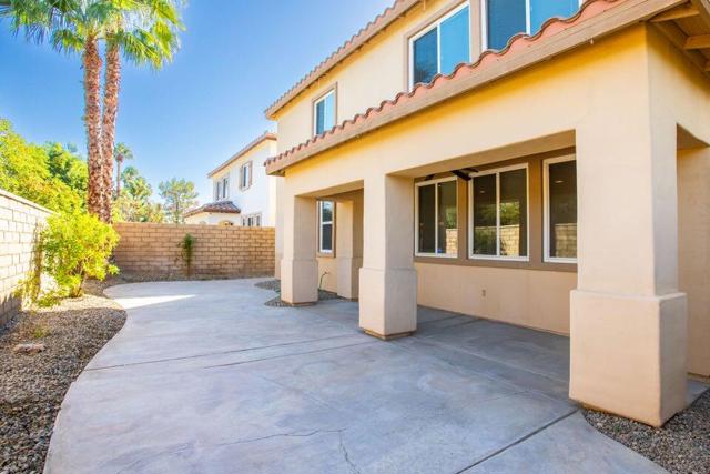Located in the gated Paseo Vista community in Palm Desert, this move-in-ready 4-bedroom, 3-bath home offers an ideal combination of location, privacy, and convenience. Situated just steps from Whole Foods, Trader Joe's, and the Palm Desert mall, this home provides easy access to major roads, nearby hiking trails, and the CV Link for outdoor recreation and commuting. This Palm Desert gated community features only 64 homes, a community pool and spa, well-maintained landscaping, and a low HOA of $196 per month. Built in 2005, the two-story home features fresh interior paint and new carpet upstairs and on the stairs, making it truly move-in ready. The main level includes an open-concept living and dining area, a gas fireplace, and a spacious kitchen with a large pantry, ideal for everyday living and entertaining. A first-floor bedroom and full bathroom offer flexibility for guests, multigenerational living, or a home office. Upstairs, three additional bedrooms provide privacy and comfort. The low-maintenance backyard is perfect for outdoor living and entertaining. This well-maintained Palm Desert home for sale is an excellent opportunity for primary residence, second home, or investment property in a highly desirable location.