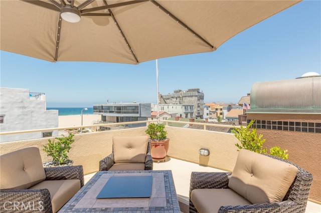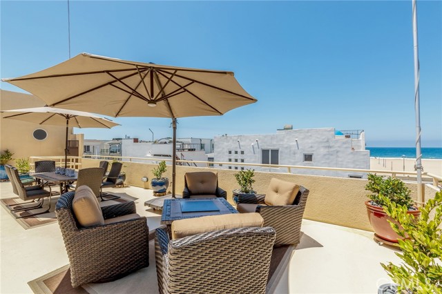 FURNISHED townhome on a walk street, steps to the beach and the world famous Strand. Set along one of Hermosa Beach’s coveted walk streets just three homes from the sand. This 2-bedroom, 3-bath residence with an additional office area offers a rare opportunity to enjoy ocean views and beach proximity in one of the South Bay’s most desirable locations. The living area is both sophisticated and inviting, featuring a fireplace, large flat-screen TV, plush oversized sofa, and designer accent chairs—perfect for relaxing or entertaining. Adjacent, the dining area comfortably accommodates eight guests, creating an ideal setting for everything from casual family dinners to elegant gatherings. A small patio with lounge seating extends off the living room, offering a perfect spot for relaxing. The chef’s kitchen is equally impressive, boasting stainless steel appliances, expansive granite countertops, abundant cabinetry, and a charming breakfast nook with additional seating. Whether preparing a quick morning coffee or hosting a full dinner party, this kitchen offers both functionality and style for the culinary enthusiast. Expansive rooftop deck—approximately 1,000 square feet of prime outdoor living space with breathtaking panoramic views. From Catalina Island to the Palos Verdes Peninsula and across Santa Monica Bay, the vistas are nothing short of spectacular. Designed for entertaining, the deck includes a large dining table, lounge seating areas, umbrellas, a fire pit, and a BBQ. The primary suite, conveniently located on the first floor, offers a private retreat complete with its own outdoor patio with a table and chairs. Inside is a spacious en-suite bathroom featuring a large vanity, walk-in shower, and 2 generous closet spaces. The second bedroom is also located on this level and includes its own private bathroom, making it ideal for guests or family members seeking comfort and privacy. A versatile den/office space provides additional flexibility and includes a trundle bed, perfect for accommodating overnight visitors or creating a work-from-home environment. Additional highlights include an in-unit washer and dryer, a tandem garage with an extra exterior parking space, and a pet-friendly policy (please submit for approval). Just a short stroll to downtown Hermosa Beach’s vibrant shops, restaurants, and nightlife, while also offering quick access to the Redondo Beach Marina and an array of beach and water activities. Utilities are not included.