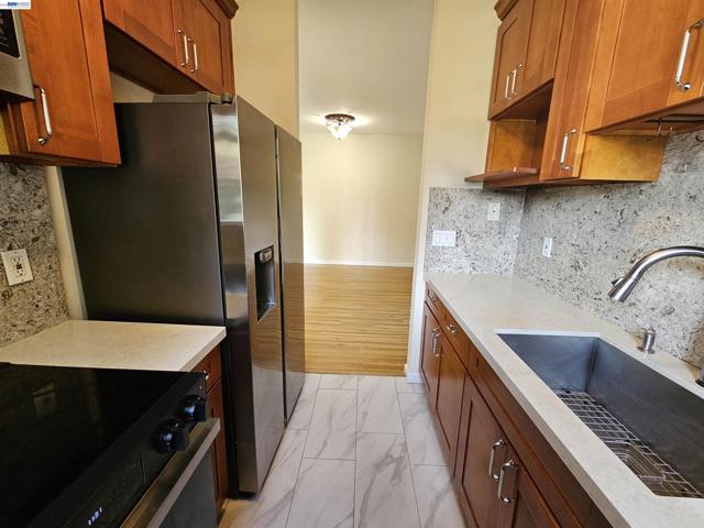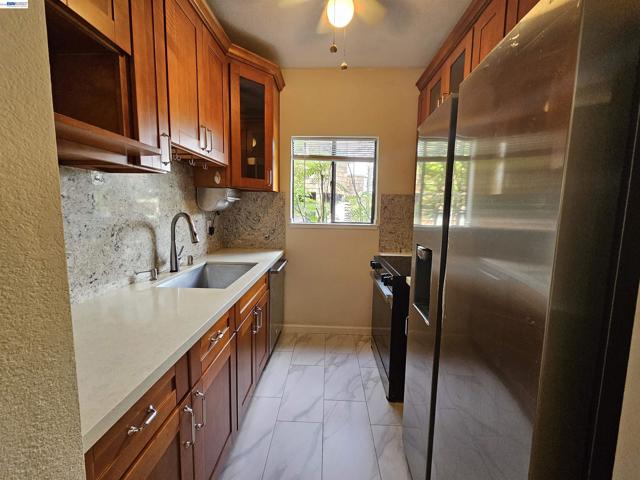 This is it! Beautiful corner unit home that is located in the heart of Warm Springs, easy access to I-880/680. Great location close to all amenities for work (TESLA, CISCO, etc.), shopping, restaurants, parks, public transportation and walking to excellent schools. It has good ceiling height for great air flow and natural light. Modern open floor plan in the family and dining area. Wonderful quartz counter kitchen with stainless steel appliances, including a convenient in unit washer and dryer. The 2 spacious bedrooms are perfect for quiet relaxation while the bathrooms are finished with quartz panels and designer vanities. Easy care with its tile and laminate flooring. Enclosed (1) detached garage for parking &/or storage and additional (2) assigned uncovered parking spaces. Huge greenbelt area at the back of the home for playing &/or walking. A must see!