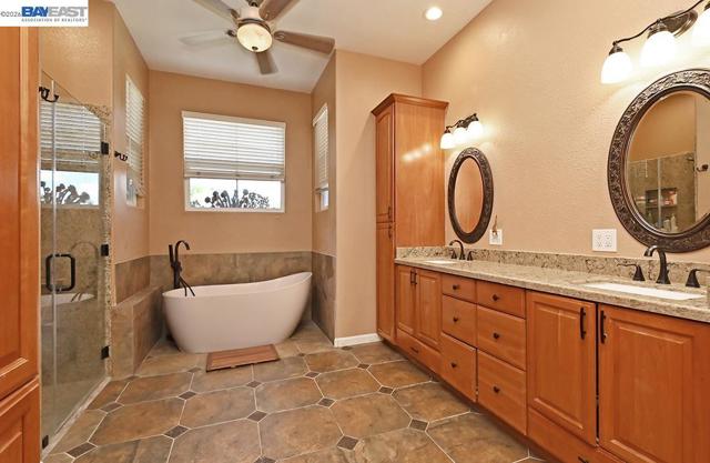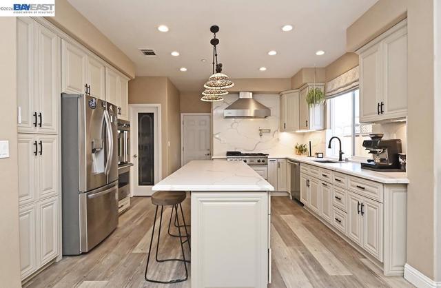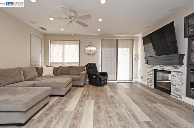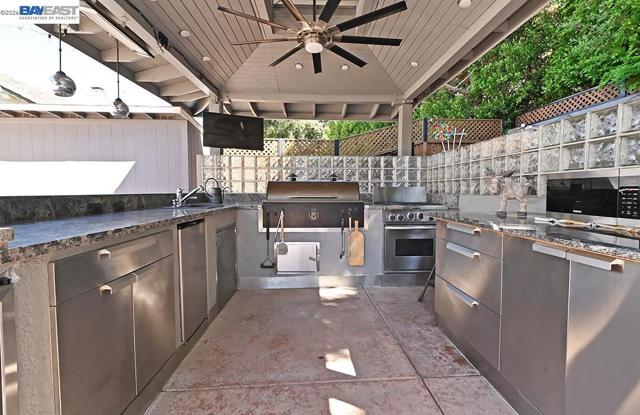 Prime location in Coventry with no HOA! Incredible rear yard with recently-resurfaced pool/spa, new pool sweep and large shade pavilion featuring an awesome outdoor kitchen with built-in Traeger grill, pizza oven, gas cooktop/oven, sink, fridge, wine cooler, stainless storage, ceiling fan, lighting and gas fireplace. Modern floor-plan features 2 primary suites - one on each floor - perfect for multi-generational living. Beautifully updated island kitchen with high-end Viking appliances, stone counters/backsplash, pot-filler, pull-out cabinetry and walk-in pantry. Bathrooms remodeled with quartz counters and backsplash. Hardwood floors, recessed lighting, surround-sound and double-sided fireplace. New HVAC and water heater. Whole house fan and solar power. Outside you can also enjoy an upper sitting area, garden space and citrus trees. 2 storage sheds, drainage and sprinkler system. Convenient 3 car garage. High end staircase chair lift installed 5 years ago, ideal for elderly or orthopedic uses. Just minutes to Livermore wine country, downtown dining, shopping and entertainment, as well as area parks and schools. Sellers would like 21 day rent back, if possible.