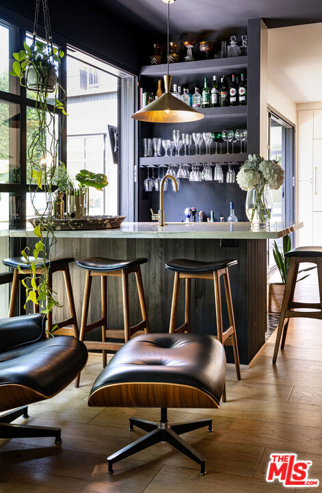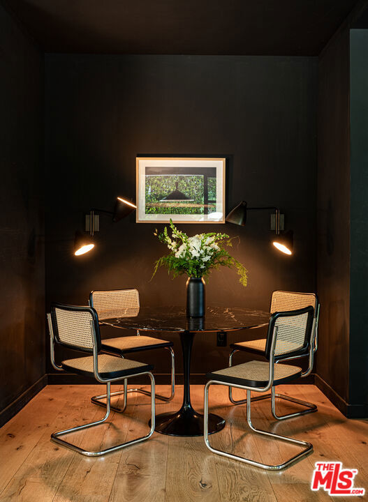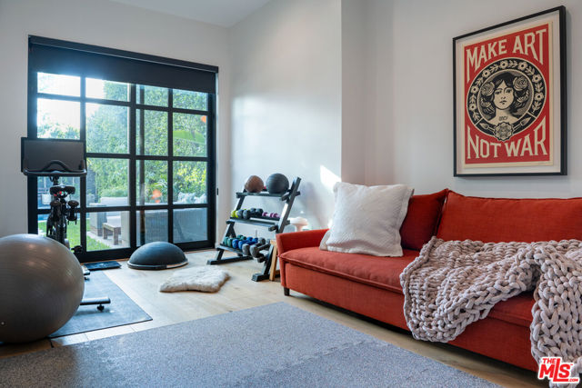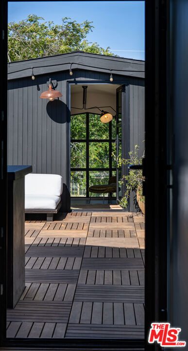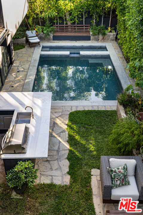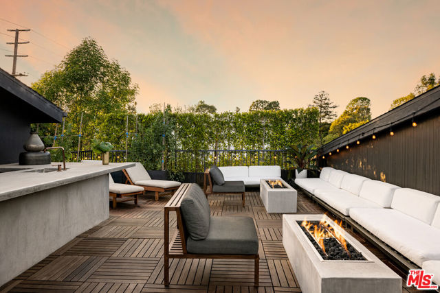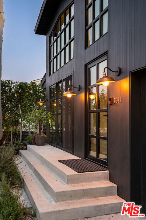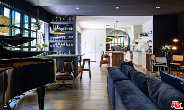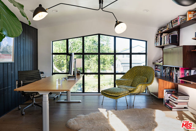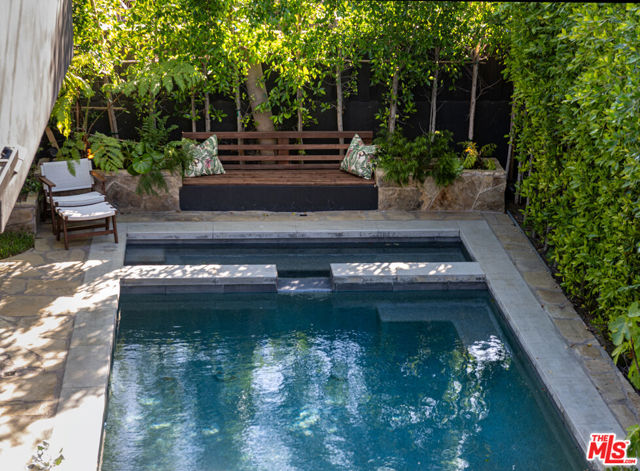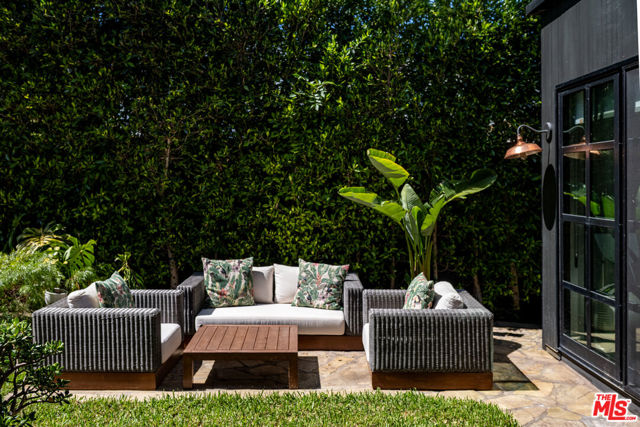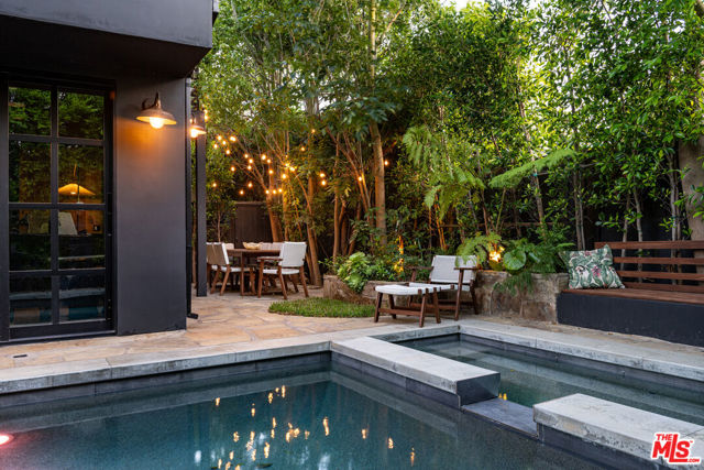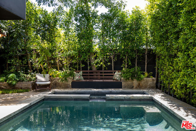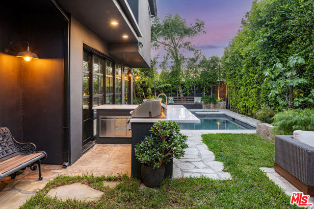 Tucked behind gates in the heart of Mar Vista, this Casey Blanco-designed contemporary is defined by bold architectural lines, rich materiality, and an effortless connection to the outdoors. Wrapped in dark cladding and softened by lush landscape, the home unfolds through walls of sliding glass, where natural light, garden views, and ocean breezes animate the interiors. Wide-plank oak floors, elevated ceilings, and warm, layered living spaces create a quiet sophistication throughout, balancing openness with intimacy. Designed for both everyday living and gathering, the home spills out to a series of beautifully composed outdoor moments, from the pool and spa to verdant lounge spaces and a rooftop deck designed for sunset evenings under the coastal sky. The 5-bedroom, 4.5-bath floor plan is both refined and livable, anchored by a serene primary suite opening to the landscape and complemented by flexible bonus spaces. Set in one of the Westside's most beloved neighborhoods, near the iconic Gregory Ain enclave and moments from Mar Vista's cafes, markets, and some of the city's best neighborhood dining, the home captures a distinctly coastal rhythm, easy rides to the beach, and ocean air drifting inland. A rare architectural offering where privacy, design, and indoor-outdoor living converge.