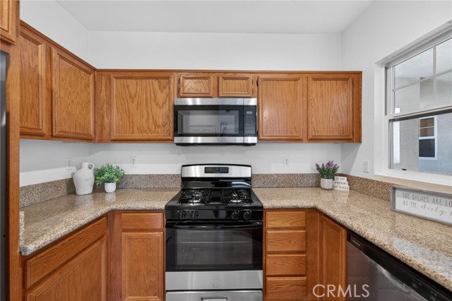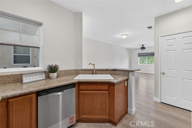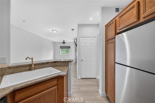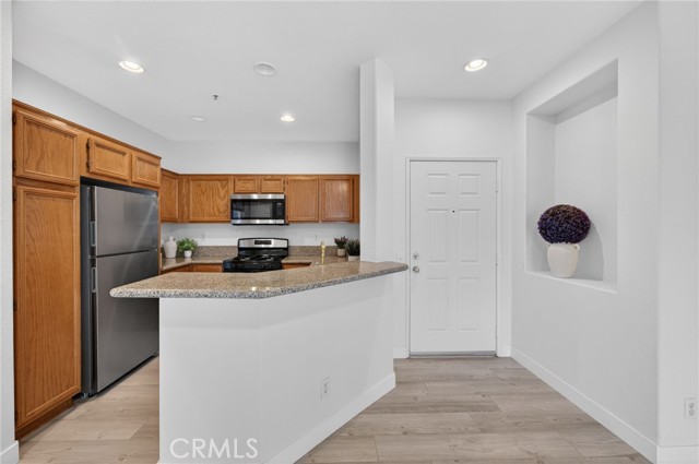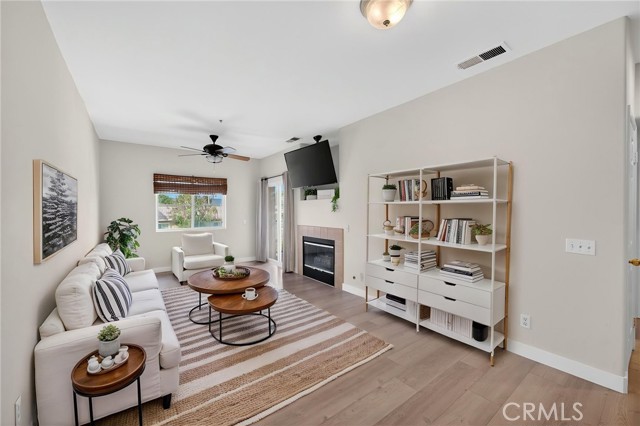 Location! Location! Location! Welcome home to this recently upgraded 1 bedroom, 1 bath condominium in the beautiful gated community of Verona located in Murrieta - steps away from the heart of Temecula. This turnkey home features new luxury vinyl plank flooring, newer paint, new stainless steel appliances, new porcelain sink, luxurious plumbing fixtures and granite countertops. The spacious living area showcases a cozy fireplace and opens to a light-filled private patio with views of the mountains and city —perfect for relaxing or entertaining. The bathroom has luxury plumbing fixtures, a newly remodeled shower with double shower heads & glass doors, and a new Sense Flow toilet. Enjoy the convenience of in-unit laundry with the stacked washer/dryer included, and retreat to the bedroom offering elegant coffered ceilings and a picture window overlooking the Santa Rosa Plateau. A private one-car garage provides ample parking plus extra storage. The HOA maintains the exterior of the home, the patio and the roof and common areas so you can enjoy more of your time in the wonderful community amenities. Verona’s great amenities include a large pool and spa, fitness center, and barbecue areas, ideal for an active lifestyle. Centrally located near shopping, dining, and a short drive from wine country, this home is a true gem!
