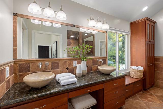 Located on just over 1 acre in the heart of Poway, 14026 Donart Dr offers a rare blend of space, privacy, and resort-style living. The expansive grounds feature a heated pool, spa, new outdoor BBQ entertaining area with updated appliances, multi use pickleball sport court, and a custom pitch-and-putt golf course which is ideal for both entertaining and everyday enjoyment. The home has been thoughtfully updated with major system improvements including AC/HVAC, electrical, irrigation, added solar, and whole home water softener and filtration system. Cosmetic upgrades include luxury vinyl plank flooring, recess lighting, custom paint, and curated landscape. There is an additional flex space that offers potential to be an formal ADU, complete with bedroom, living area, and kitchenette which would be ideal for guests, multigenerational living, or added income. This is a unique opportunity to own a property with usable land that has exceptional outdoor amenities and room for further upside.