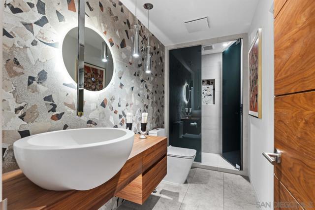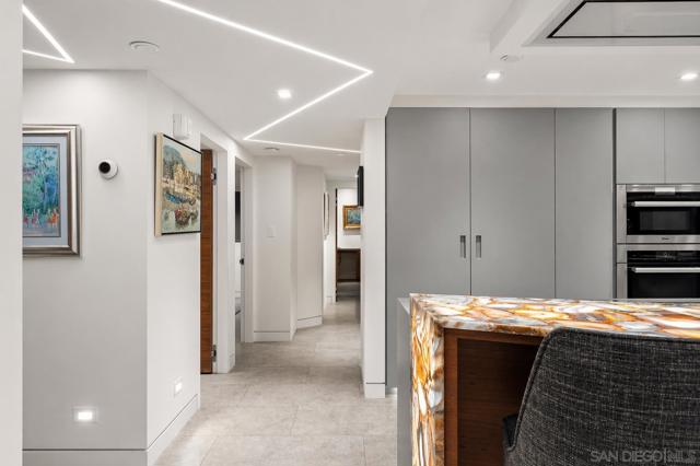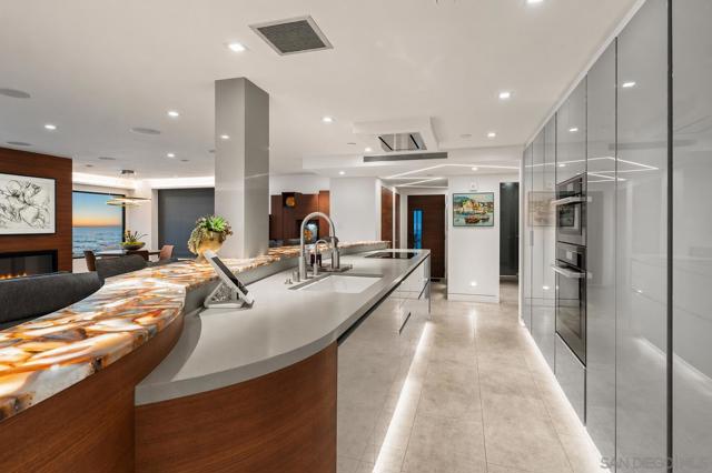 Perched directly on the coveted La Jolla coastline, Residence 104 at 100 Coast Blvd offers a rare, single-level living experience where architecture and ocean exist in perfect harmony. Walls of glass dissolve the boundary between indoors and out, panoramic views of the Pacific, an ever-changing backdrop of light, water, and horizon. Recently reimagined with over $2 million in bespoke renovations, this turnkey residence is a masterclass in refined coastal living. Scandinavian minimalism is seamlessly paired with world-class Italian craftsmanship, highlighted by award-winning Aster Cucine kitchen and bath cabinetry, a dramatic backlit agate bar, and a full suite of Miele appliances. Custom walnut solid-core doors, integrated Pianca wardrobe systems, and curated finishes throughout elevate both form and function. The primary suite is designed as a private sanctuary, featuring a spa-caliber steam room, Jacuzzi whirlpool tub with ceiling-mounted filler, and a statement fireplace—one of three thoughtfully placed throughout the home. Advanced smart home technology, state-of-the-art lighting and sound systems, and comprehensive soundproofing provide a level of comfort and control rarely found in oceanfront properties. With direct access to the sand at Whispering Sands Beach, this is a truly rare offering—where the sound of the surf, the salt air, and uninterrupted coastal views become part of everyday living. Designed by Jesper Pedersen this residence is not simply a home, but a curated coastal experience—private, sophisticated, and undeniably exceptional. Some of the photos have been altered to digitally remove the scaffolding that was present during the photo shoot and that may or may not be present at the time of showings.