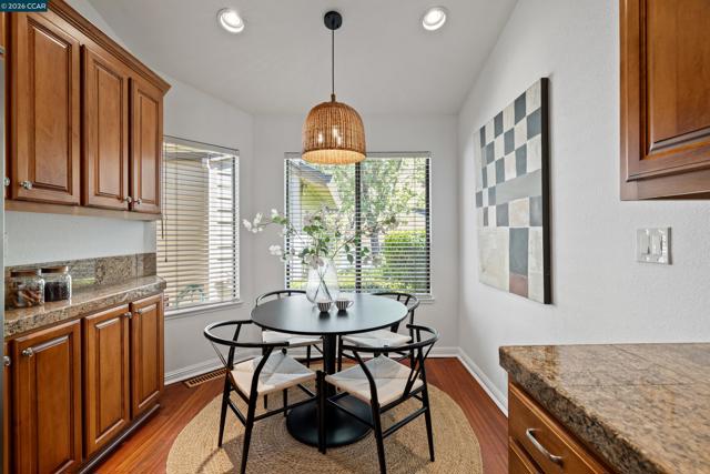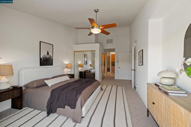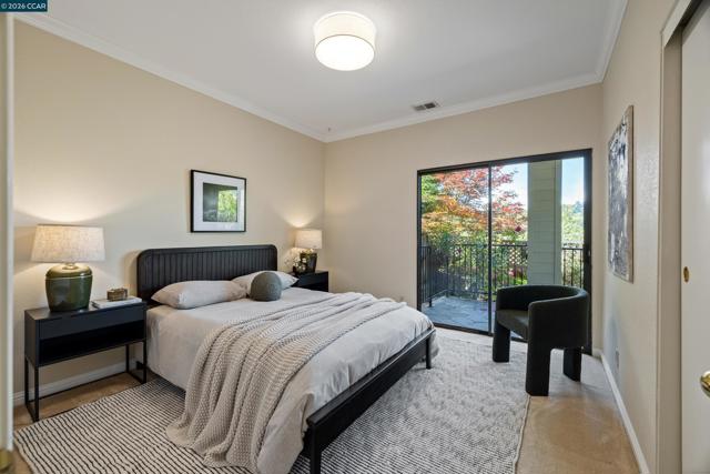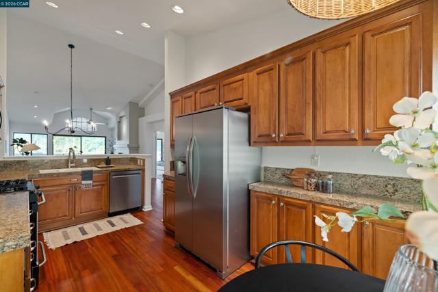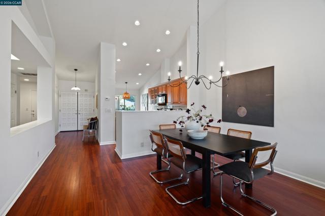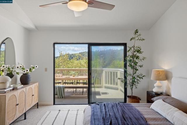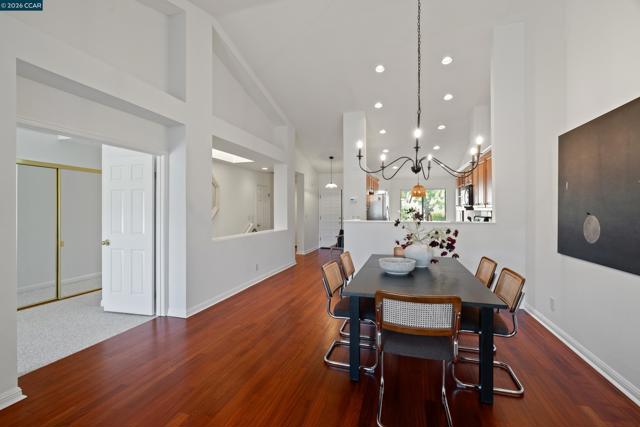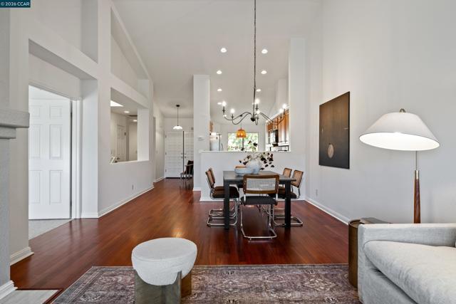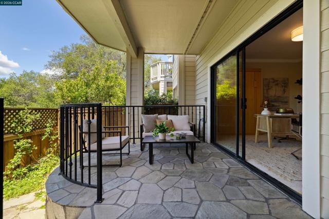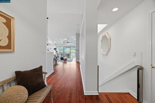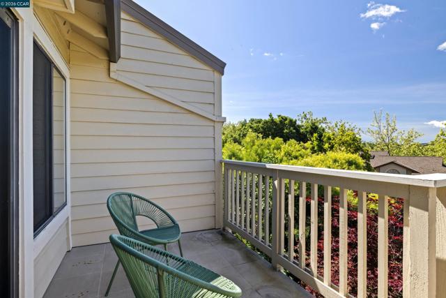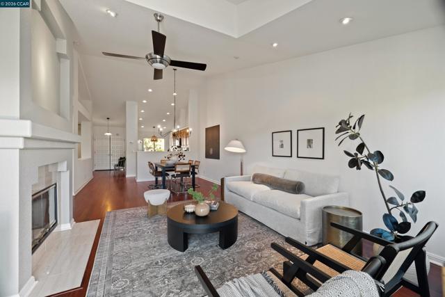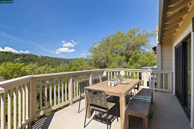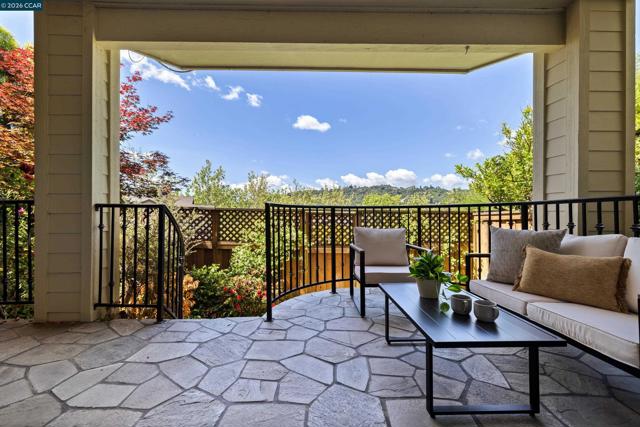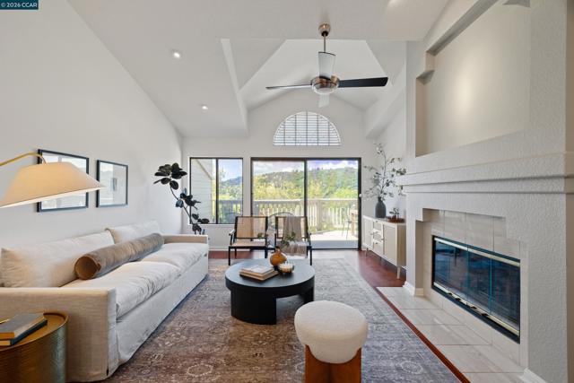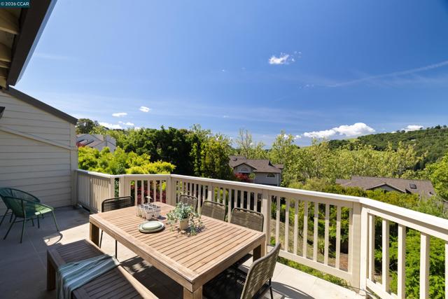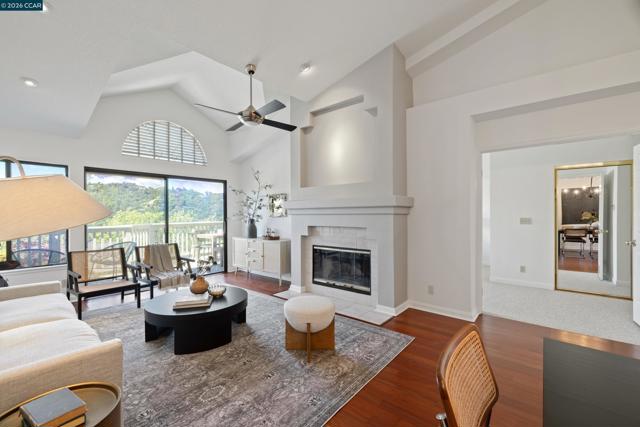 Perched on Beacon Ridge, in one of the area's most sought-after gated communities, this stunning townhouse delivers refined living with breathtaking views of the Las Trampas Hills. Soaring vaulted ceilings and gleaming, freshly refinished hardwood floors set a tone of warmth and elegance. The heart of the home is an inviting eat-in kitchen that flows effortlessly into the main living area, anchored by an impressive fireplace. Step out onto your private entertaining deck with sweeping views. Retreat to the spa-like primary suite, a true sanctuary with a private sliding glass door, walk-in closet, updated bathroom with dual vanities and over-sized stall shower. Two additional bedrooms offer flexibility for guests, a home office, or growing families. A private downstairs patio provides a quiet outdoor escape. Other features include timeless finishes, spectacular natural surroundings, resort-like amenities, abundant storage, and an over-sized two car garage all just minutes from downtown Lafayette & Walnut Creek, open space, trails, freeways, BART, and twelve years of top-rated Lafayette schools.