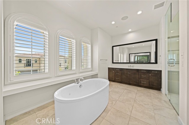 This beautifully appointed 5-bedroom, 5.5-bath residence is located in the 24-hour guard-gated community of Altair in Irvine. Built in 2018, the home offers over 4,400 sq ft of refined living space (per owner; tenant to verify), featuring high ceilings, an open-concept floor plan, and thoughtfully curated furnishings throughout. The chef’s kitchen is equipped with stainless steel appliances, a large quartz center island, built-in refrigerator, and a walk-in pantry. The living and dining areas open seamlessly to a professionally landscaped backyard, ideal for indoor-outdoor living and entertaining. The first level includes a private guest suite with an en-suite bathroom. Upstairs, a spacious loft offers flexible use as a media room, office, or additional living area. The primary suite features a spa-inspired bathroom with soaking tub, dual vanities, and dual walk-in closets. All secondary bedrooms include en-suite bathrooms. Additional highlights include a 2-car attached garage, dedicated laundry room, smart home features, and energy-efficient systems. Residents enjoy access to resort-style amenities, including clubhouses, pools and spas, tennis courts, BBQ areas, and scenic trails (subject to HOA rules and availability). Ideally located within the award-winning Irvine Unified School District, near Portola High School, Great Park, Woodbury Town Center, and Irvine Spectrum. Partially Furnished lease. Furnishings provided may vary slightly from photos. All information deemed reliable but not guaranteed. Tenant to verify all aspects independently, including square footage, features, and school availability. Submit complete application with proof of income and credit report. Tenant Occupied, 24 hours notice to schedule showing.