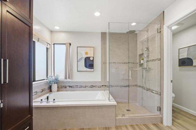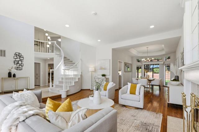 From the moment you arrive at this magnificent Glencrest Estates home, a memorable impression with beautifully landscaped grounds filled with mature shade and fruit trees, vibrant roses, and manicured greenery. A dramatic entry with a sweeping staircase and soaring ceilings immediately sets the tone for the homes sophisticated interior. The light-filled living room, rich hardwood flooring and a stunning window alcove invites in natural light, while the formal dining room offers a tray ceiling, designer lighting, and seamless indoor-outdoor flow. Newly updated kitchen features quartz slab countertops and soft-close cabinetry, stainless steel appliances, all opening to an inviting family room. Ground-floor bedroom and full bath provide flexibility for multi-generational living. Primary suite with vaulted ceilings, a private balcony overlooking backyard, and a spa-inspired en suite. The expansive upstairs BonusRoom/5th-bdrm doesn't currently have a closet but could easily be installed. Backyard has multiple patios, a pergola-covered entertaining area and lush greenery that create a private oasis and 20 fruit trees (apple, jujube, persimmon, orange) as well as passion fruit vines. Located near parks, scenic trails. Top Schools: Williams, Bret Harte, Leland. Community pool.