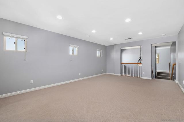 Beacon Point Plan Three with a Third Story Loft and Owned Solar!!! This is the largest sq. ft home with only 9 total in all of Liberty Station! What's unique about this home is that is is perfect for a couple who both work from home and need their own separated office spaces or you are in need of a fourth bedroom and another two office spaces. There is an office space downstairs conveniently located near the formal living and formal dining room and the third story loft has a very large open room that could be converted to a fourth bedroom and possibly a fourth bathroom and it is separated from a office space. The Owned 6.93 Kilowatts Solar was installed in 2021 with 21 panels. Other features of this home include all Stainless Steel Appliances, Granite Countertops and Fresh Interior Paint. The Master Suite approx. 32x22 and the Master Bath features a large soaking tub, separate shower, dual sinks, make up station and also has a very large customized walk-in closet. The two additional bedrooms are on the same floor but on the opposite end of the home for privacy. The formal living room has double doors leading out front and the family room with a focal gas FPL is open to the kitchen and breakfast table area and looks out on the backyard with an added deck. All located in the walking village of Liberty Station with a 46 acre waterfront park, Rock Church, The Lot Movie Theater, Loma Club Golf Course, Trader Joes, High Tech Schools, Stone Brewery, Liberty Station Public Market and so much more!